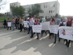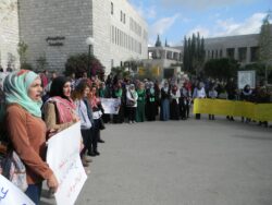 The protest also addressed the case of Islam Badr, another Bir Zeit student, currently engaged in the hunger strike of Palestinian political prisoners protesting solitary confinement. He was previously on hunger strike for 45 days against the practice of administrative detention without charge or trial.