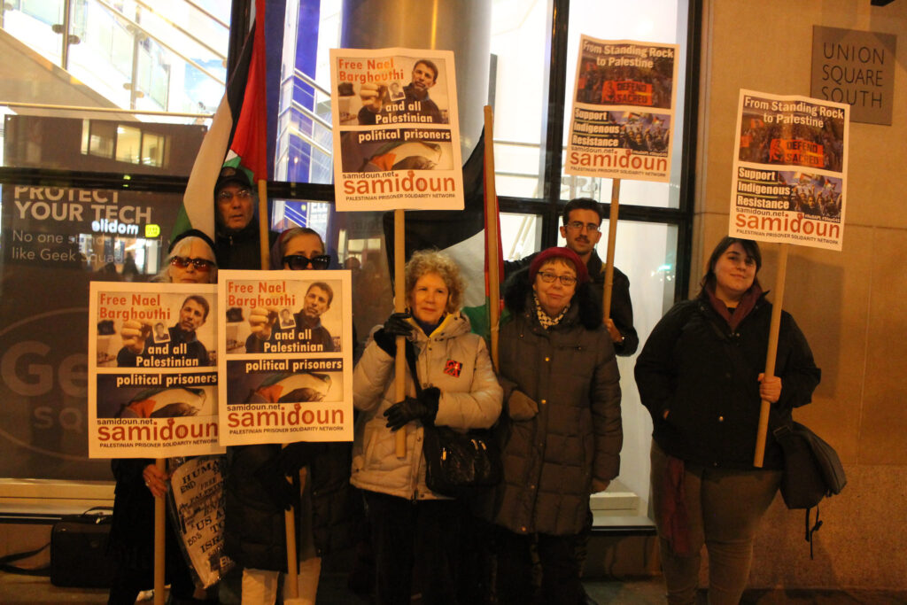 New York City protesters gathered outside Best Buy on 27 January to demand freedom for Nael Barghouthi and all Palestinian prisoners and highlight the growing global boycott campaign against HP (Hewlett-Packard) for profiteering from the oppression and imprisonment of Palestinians.