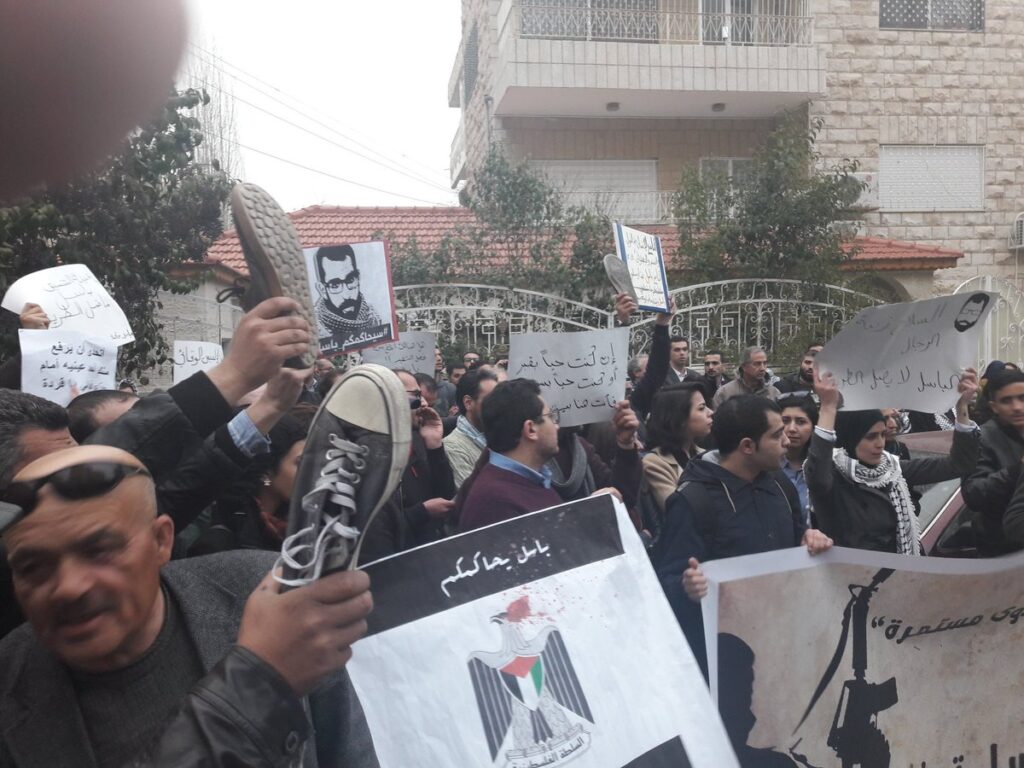 Protesting Palestinians in Ramallah came under attack by Palestinian Authority security forces this morning, including the father of slain Palestinian youth activist Basil al-Araj, journalists and former prisoners, such as Khader Adnan. Later in the evening, PA police also attacked a march in Dheisheh refugee camp near Bethlehem demanding an end to security coordination and honoring al-Araj.