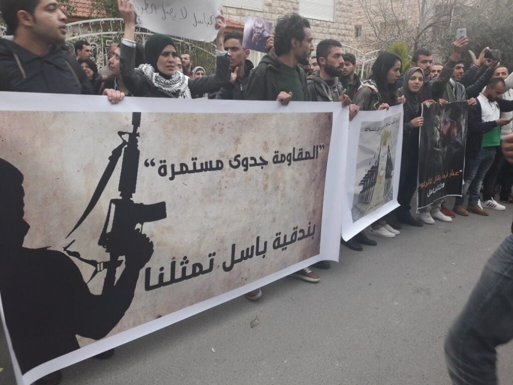 The demonstration was called in protest of PA security coordination with the Israeli occupation, under which al-Araj and his comrades were initially imprisoned by the PA after a court hearing was maintained for charges against al-Araj and his comrades for Sunday, 12 March. Their arrest was touted as a significant achievement for PA-Israeli security coordination in April 2016.