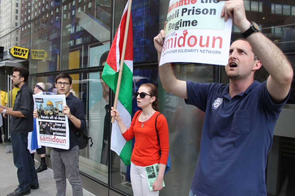 Samidoun Palestinian Prisoner Solidarity Network will continue its weekly protests, now on Mondays at 4:30 pm at the Best Buy in Union Square. The next protest will take place on Monday, 7 August and will focus on solidarity with Bilal Diab, Palestinian administrative detainee imprisoned without charge or trial on hunger strike since 14 July to demand his freedom. All supporters of Palestine are urged to attend, especially to confront JDL attempts at intimidation and racist attacks.