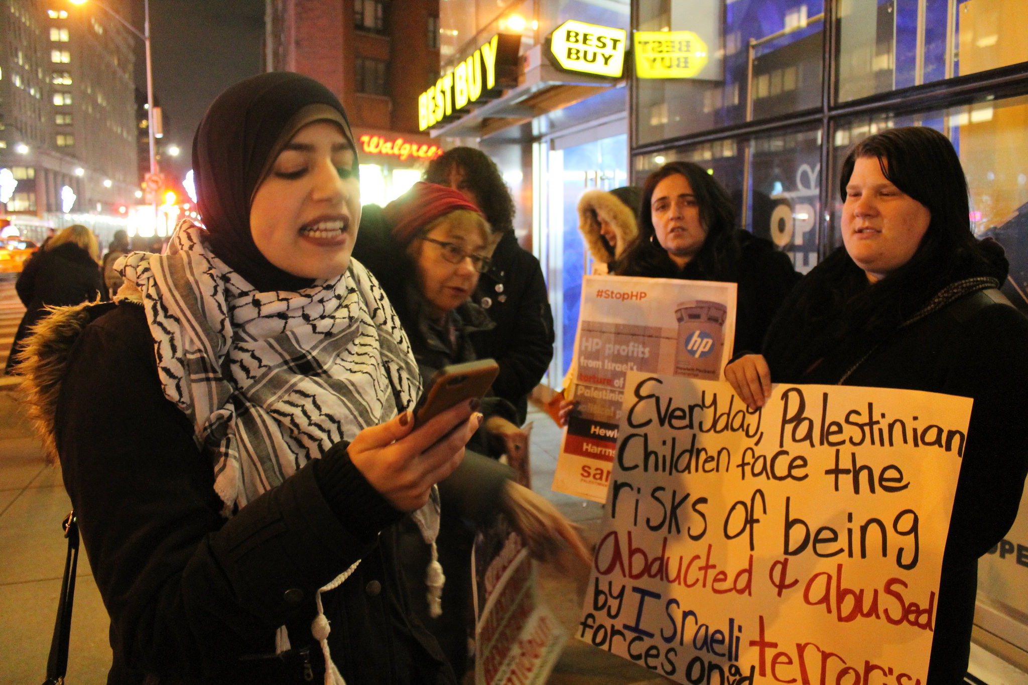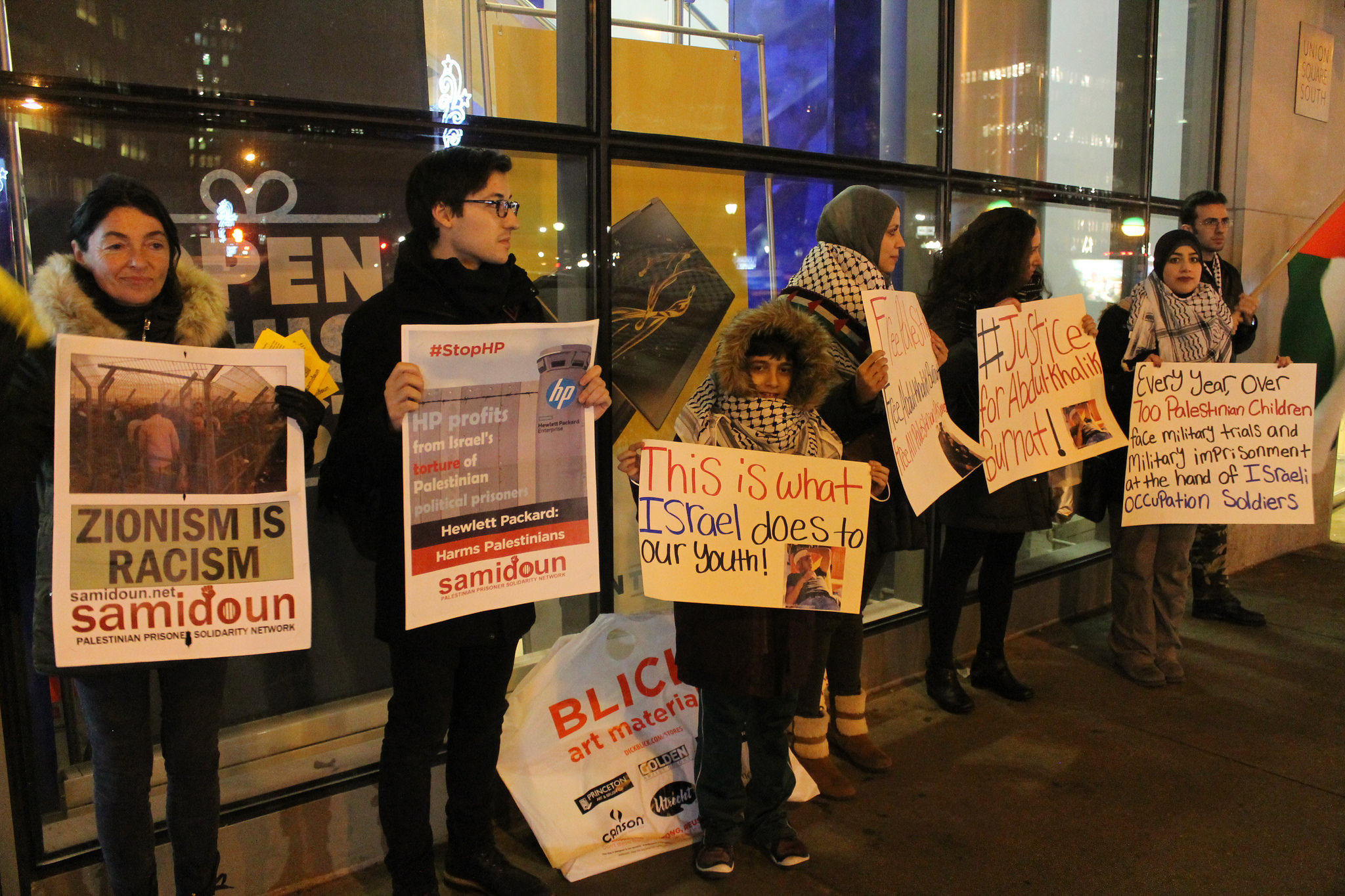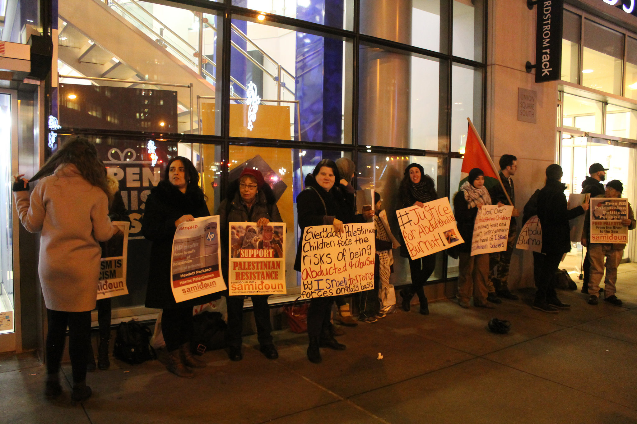 Demonstrators distributed leaflets and information about the case of Abdul-Khalik and other child prisoners as well as HP’s involvement and complicity in Israeli war crimes and human rights violations. They noted a marked uptick in strong expressions of support and solidarity from passers-by and New Yorkers on the street, many of whom expressed their outrage at U.S. President Donald Trump’s declaration purporting to recognize Jerusalem as the capital of Israel, a declaration that has inspired a Palestinian upsurge of demonstrations and protest and global censure and which underlines the destructive, imperial role of the U.S. in the region.