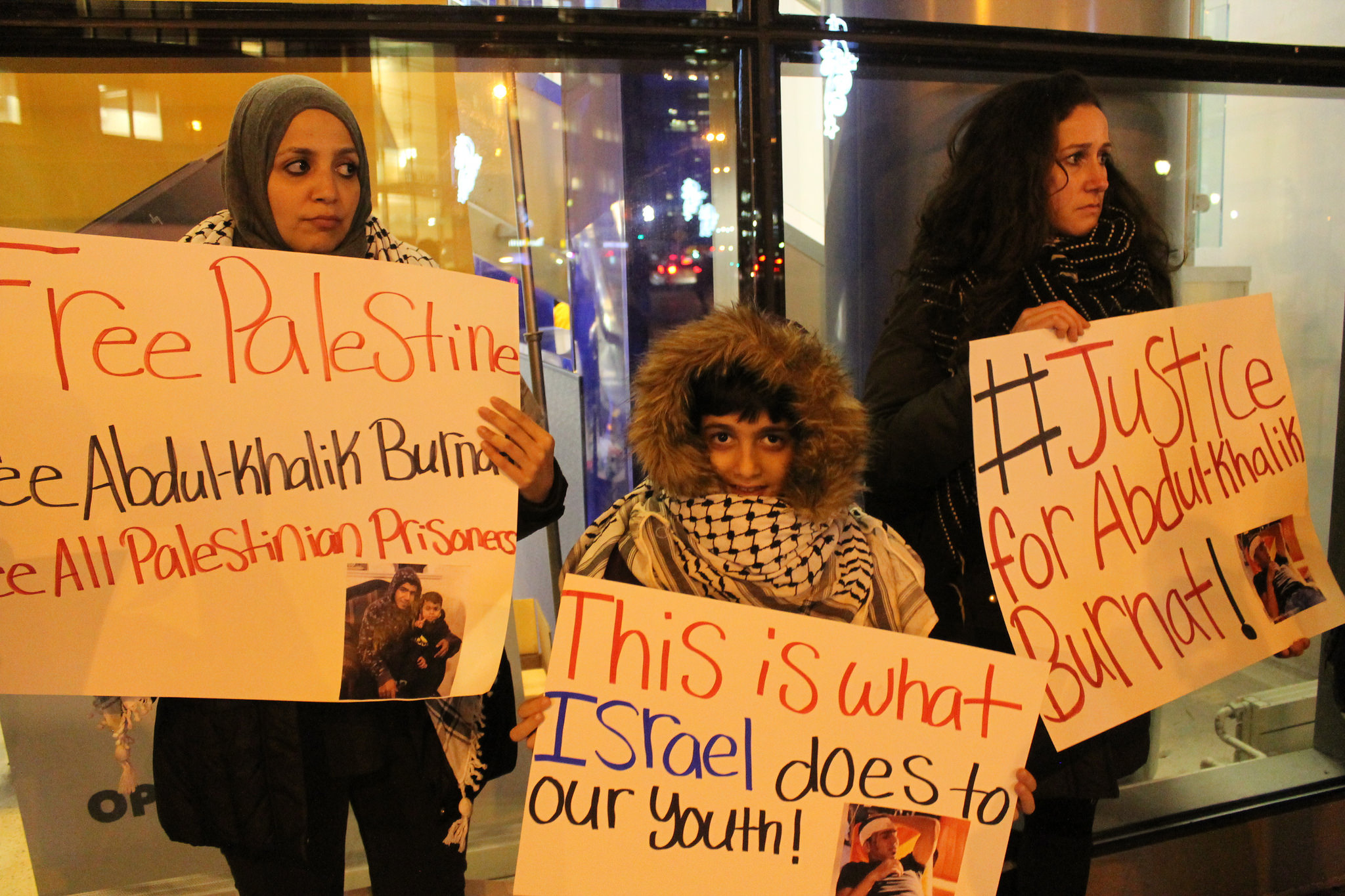“We are here today for Abdul Khalik Burnat, a Palestinian minor detained and tortured by Israeli military forces for absolutely no reason except for the fact that he is Palestinian.