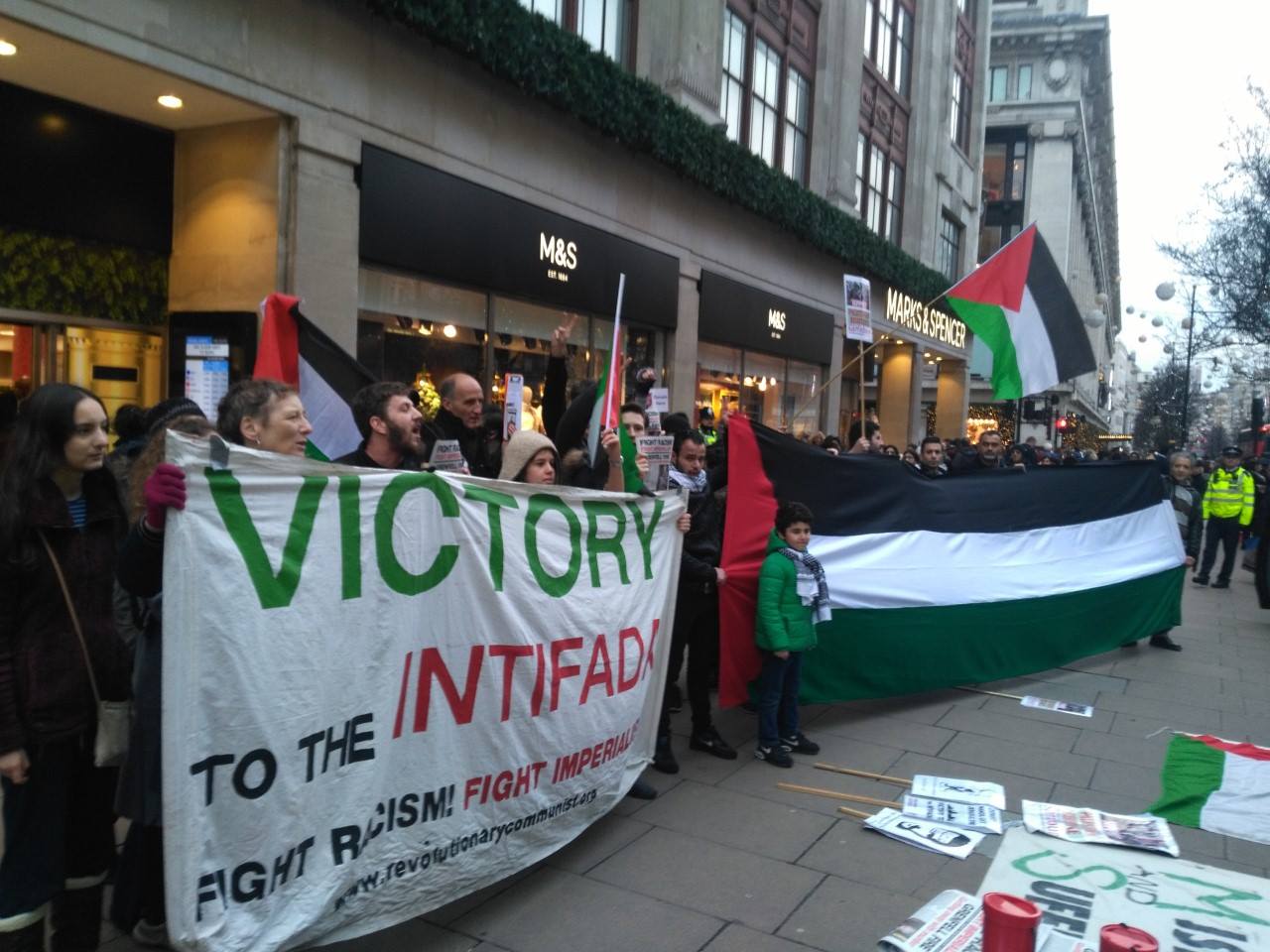 Dozens of organizations around the world joined a global call for actions to free Ahed Tamimi, fellow Palestinian child prisoners like Abdul-Khalik Burnat, her family members Nariman and Nour Tamimi, and all Palestinian prisoners on 22 December. This call coincided with the ongoing large demonstrations around the world in defense of Palestine and Jerusalem following U.S. President Donald Trump’s declaration that the U.S. is recognizing Jerusalem as the capital of Israel, and the upsurge inside Palestine against Zionism and U.S. imperialism. It was also marked by the 128-9-35 vote at the United Nations against the Trump declaration and Israeli colonialism in Jerusalem.