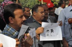 Kaabi said, “We stand today in front of the headquarters of the High Commissioner for Human Rights in the Gaza Strip, in protest against the policy of silence followed by the international institutions toward our brave prisoners in Israeli jails, especially the administrative detainees.” He urged action to support the protest threatened by administrative detainees if there is no response to their demands, saying all energies must be mobilized for their release and to launch a global campaign of solidarity with them.