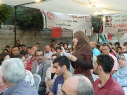 Khalida Jarrar is continuing to resist the expulsion order against her on August 20 by Israeli occupation forces; she has been based in the protest tent since the order by a military court was presented to her by a force of approximately 50 occupation soldiers raiding her home in Ramallah.