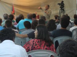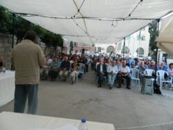 Most recently, on September 4, the tent hosted a public debate organized by the Union of Palestinian Women’s Committees, on whether the performance of the resistance in Gaza has fundamentally diminished the Oslo Accords to irrelevance. Palestinian scholar, academic and former administrative detainee Dr. Ahmed Qatamesh argued that it has, while Dr. Nabil Amro of the PLO Central Council argued that it had not; the debate was moderated by Lisa Taraki, Omar Barghouti and Abdelraheem Al-Sheikh.