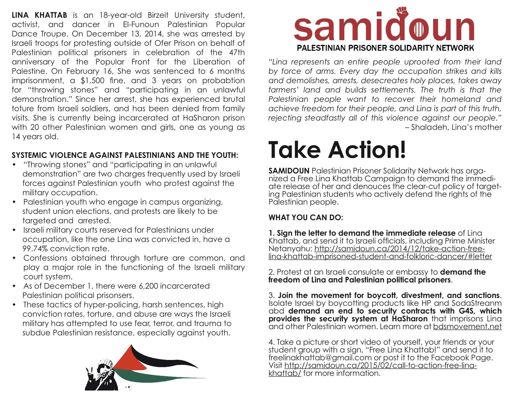 Oberlin Students for a Free Palestine’s pamphlet on Lina Khattab: