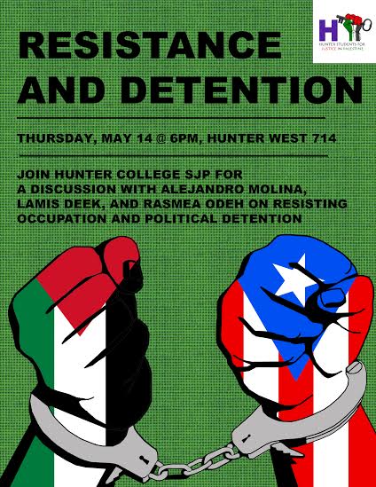 Join Students for Justice in Palestine at Hunter College for our last event of the year – a panel discussion on political prisoners. With an emphasis on Palestinian and Puerto Rican political prisoners, we will be joined by speakers with experience and knowledge about struggles for liberation from prison.