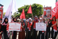 The PFLP, Sa’adat’s left-wing political party, organized several rallies and marches in Gaza, denouncing the attack and demanding freedom for Sa’adat and his fellow prisoners. One march, on the evening of 28 July, wound through Jabalya refugee camp, another marched in Rafah, a third rallied in Nuseirat refugee camp, and a fourth in Khan Younis. On the morning of 29 July, a rally in Gaza City marched to the United Nations headquarters condemning the attack by Israeli forces on Sa’adat and his fellow prisoners, with wide participation by many organizations. Jamil Mizher of the PFLP spoke, calling for a broader solidarity campaign for the prisoners on an international level, to provide political and legal support for their struggle.
