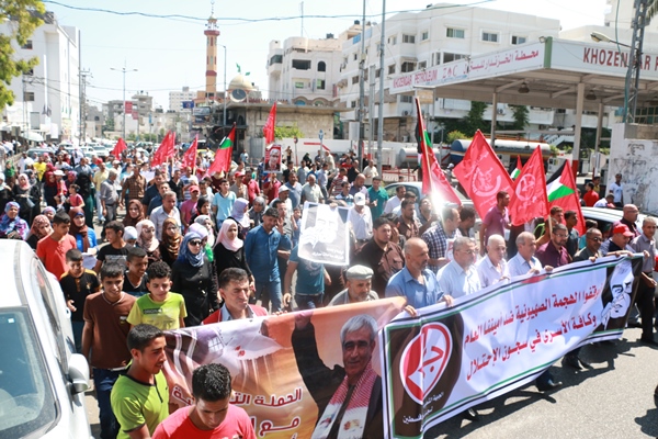 The PFLP, Sa’adat’s left-wing political party, organized several rallies and marches in Gaza, denouncing the attack and demanding freedom for Sa’adat and his fellow prisoners. One march, on the evening of 28 July, wound through Jabalya refugee camp, another marched in Rafah, a third rallied in Nuseirat refugee camp, and a fourth in Khan Younis. On the morning of 29 July, a rally in Gaza City marched to the United Nations headquarters condemning the attack by Israeli forces on Sa’adat and his fellow prisoners, with wide participation by many organizations. Jamil Mizher of the PFLP spoke, calling for a broader solidarity campaign for the prisoners on an international level, to provide political and legal support for their struggle.