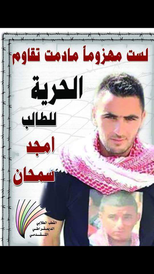Samidoun Palestinian Prisoner Solidarity Network calls for the immediate release of Samhan and dozens of fellow Palestinian students imprisoned in the jails of the occupation, and urges solidarity from student unions and groups around the world with Palestinian student prisoners.