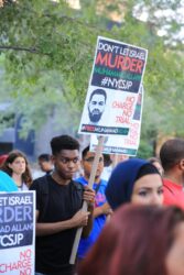 NYC SJP followed up on this protest with a march and vigil in Bay Ridge, Brooklyn on 19 August, also with the participation and leadership of Allan’s family, and will continue to organize actions, events and build community action in line with its mission:
