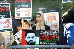Activists in New York City protested at the United Nations on 18 August, demanding freedom for imprisoned Palestinian lawyer Muhammad Allan, 31, and all Palestinian prisoners. The demonstration, organized by NYC Students for Justice in Palestine, brought together activists from groups including Anakbayan NY/NJ, Al-Awda NY the Palestine Right to Return Coalition, Revolutionary Student Coordinating Committee and more. NYC SJP issued a statement demanding freedom for Allan and all prisoners:
