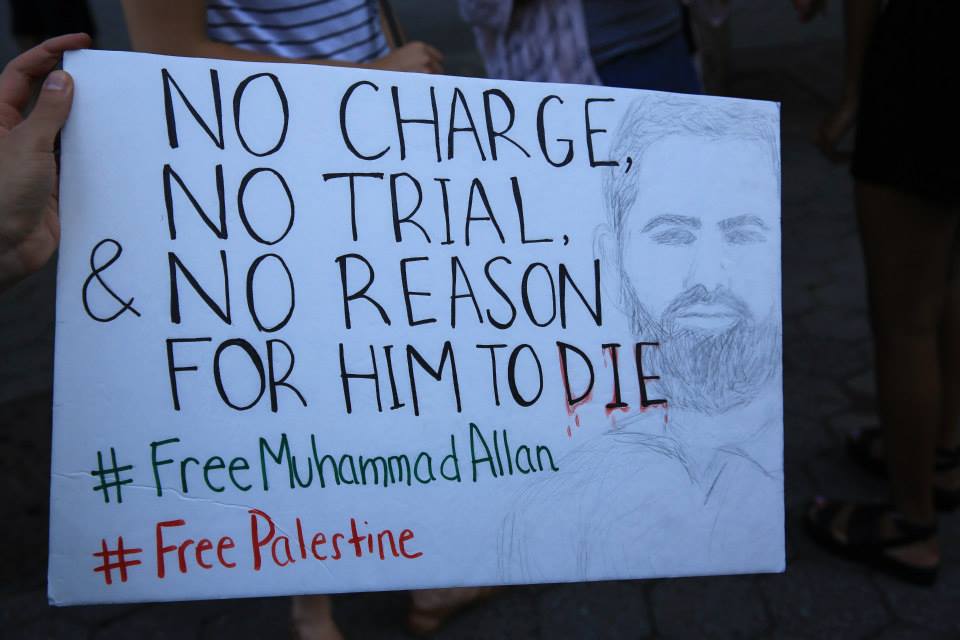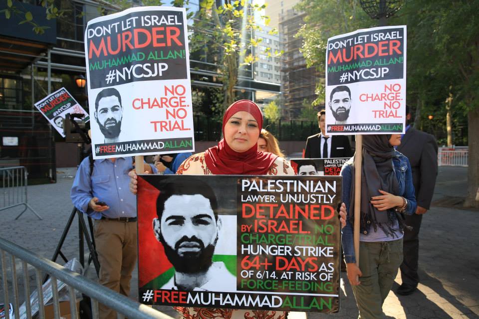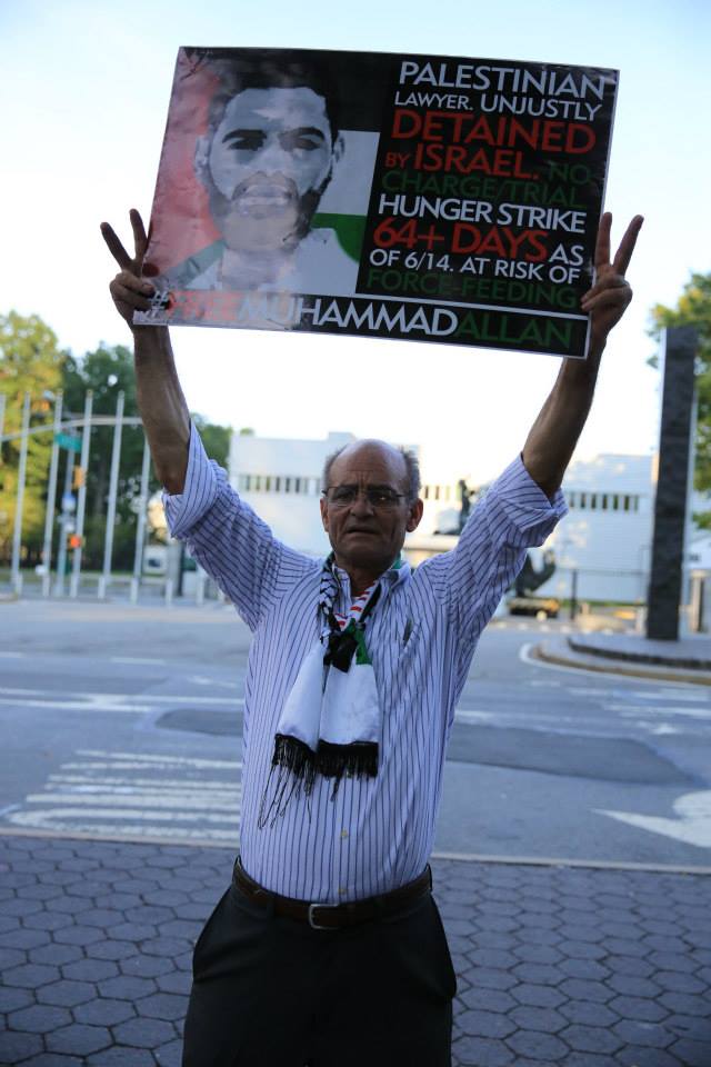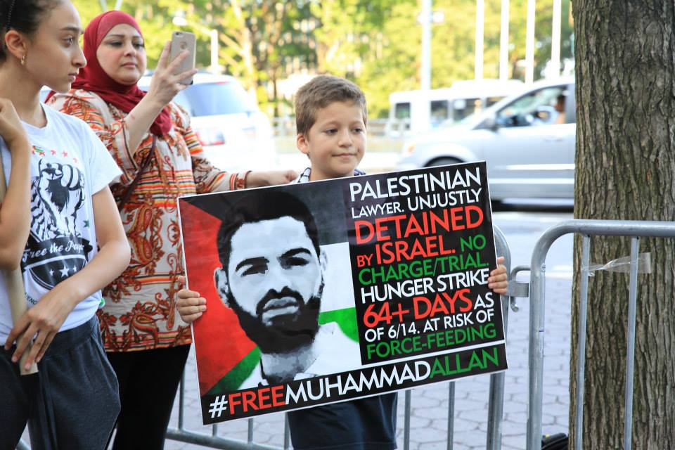 Activists in New York City protested at the United Nations on 18 August, demanding freedom for imprisoned Palestinian lawyer Muhammad Allan, 31, and all Palestinian prisoners. The demonstration, organized by NYC Students for Justice in Palestine, brought together activists from groups including Anakbayan NY/NJ, Al-Awda NY the Palestine Right to Return Coalition, Revolutionary Student Coordinating Committee and more. NYC SJP issued a statement demanding freedom for Allan and all prisoners:
