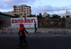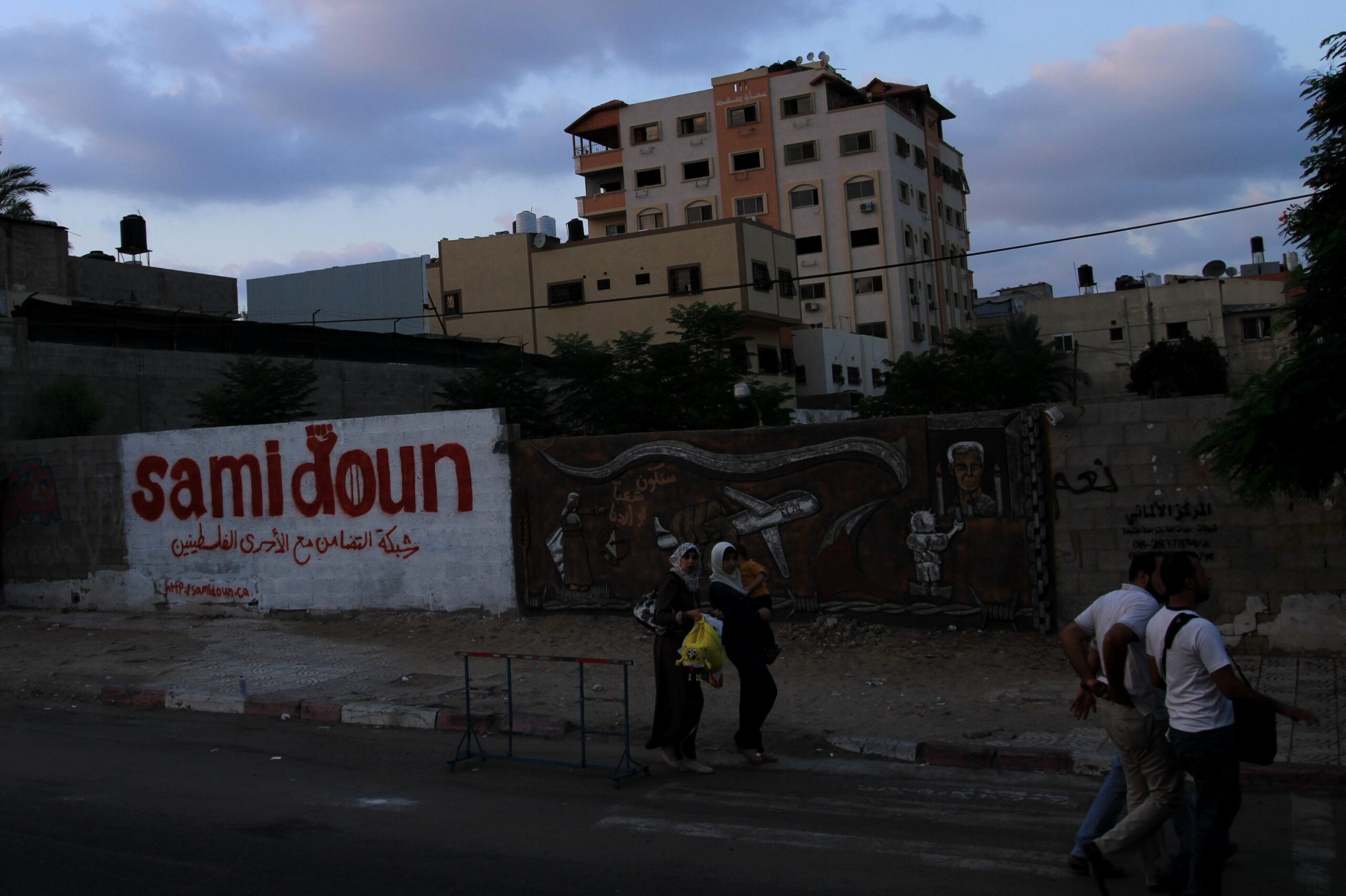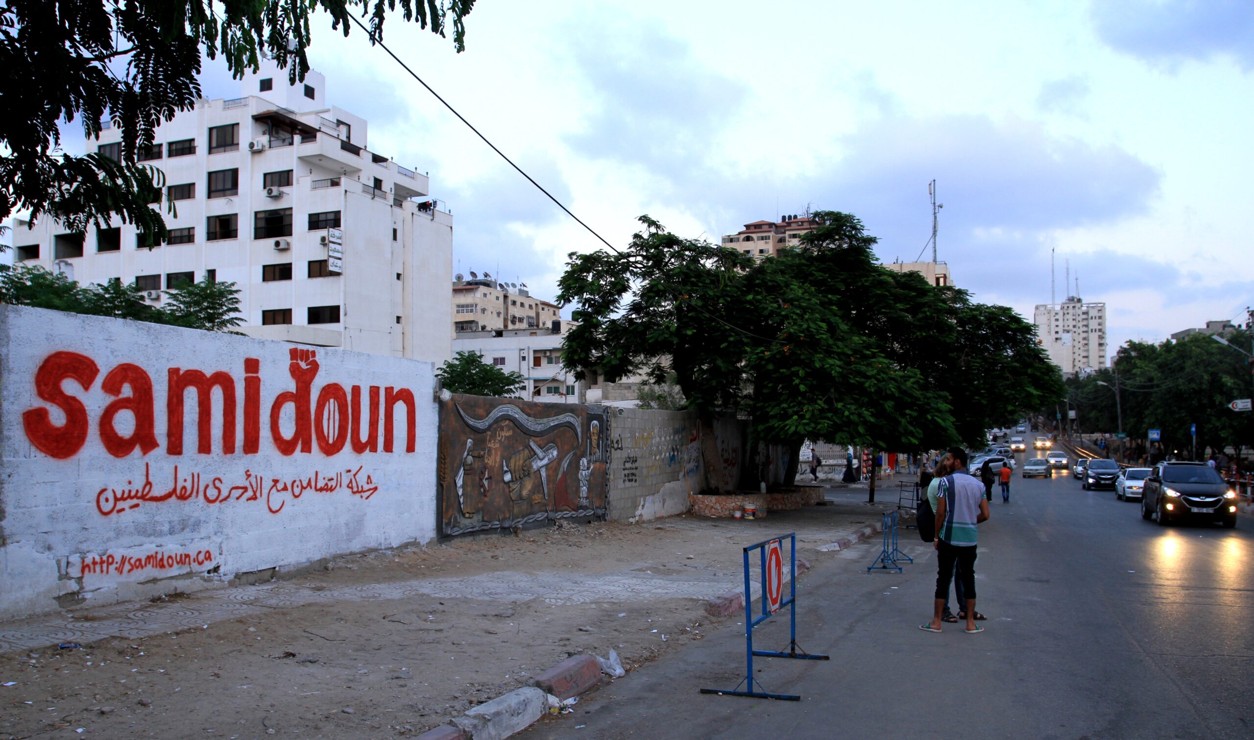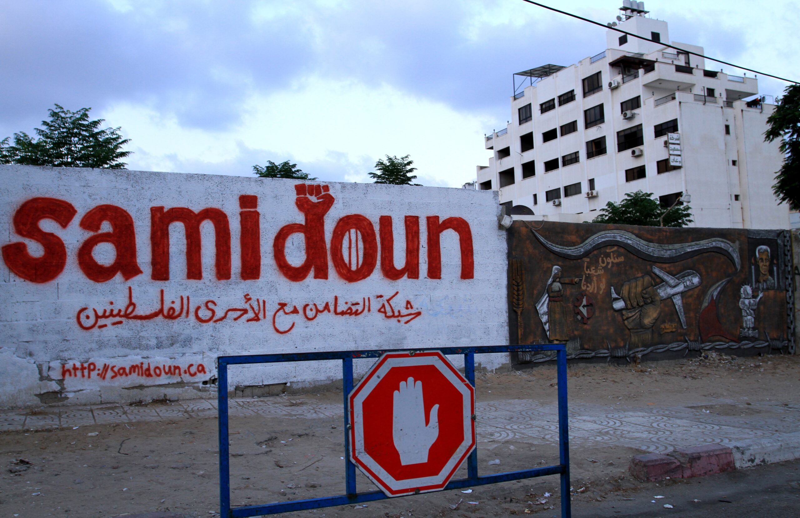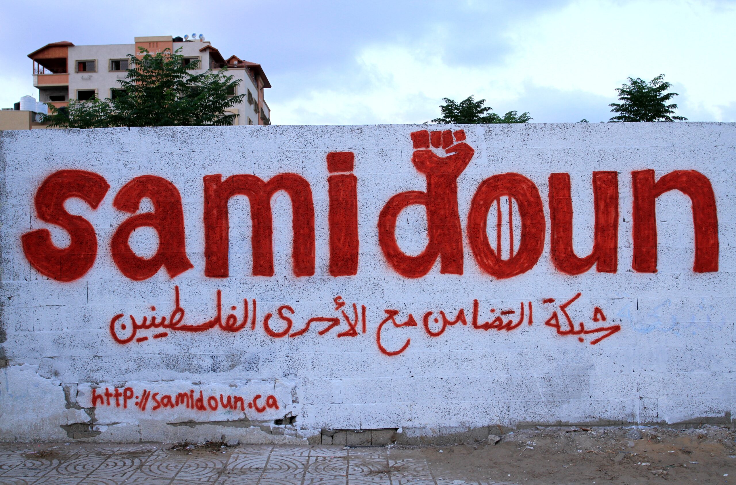 Palestinian graffiti artists and activists painted a graffiti mural across from the Palestinian Legislative Council by Unknown Soldier Square in Gaza City, in support of Samidoun Palestinian Prisoner Solidarity Network and international solidarity to free Palestinian prisoners on 23 August 2015.