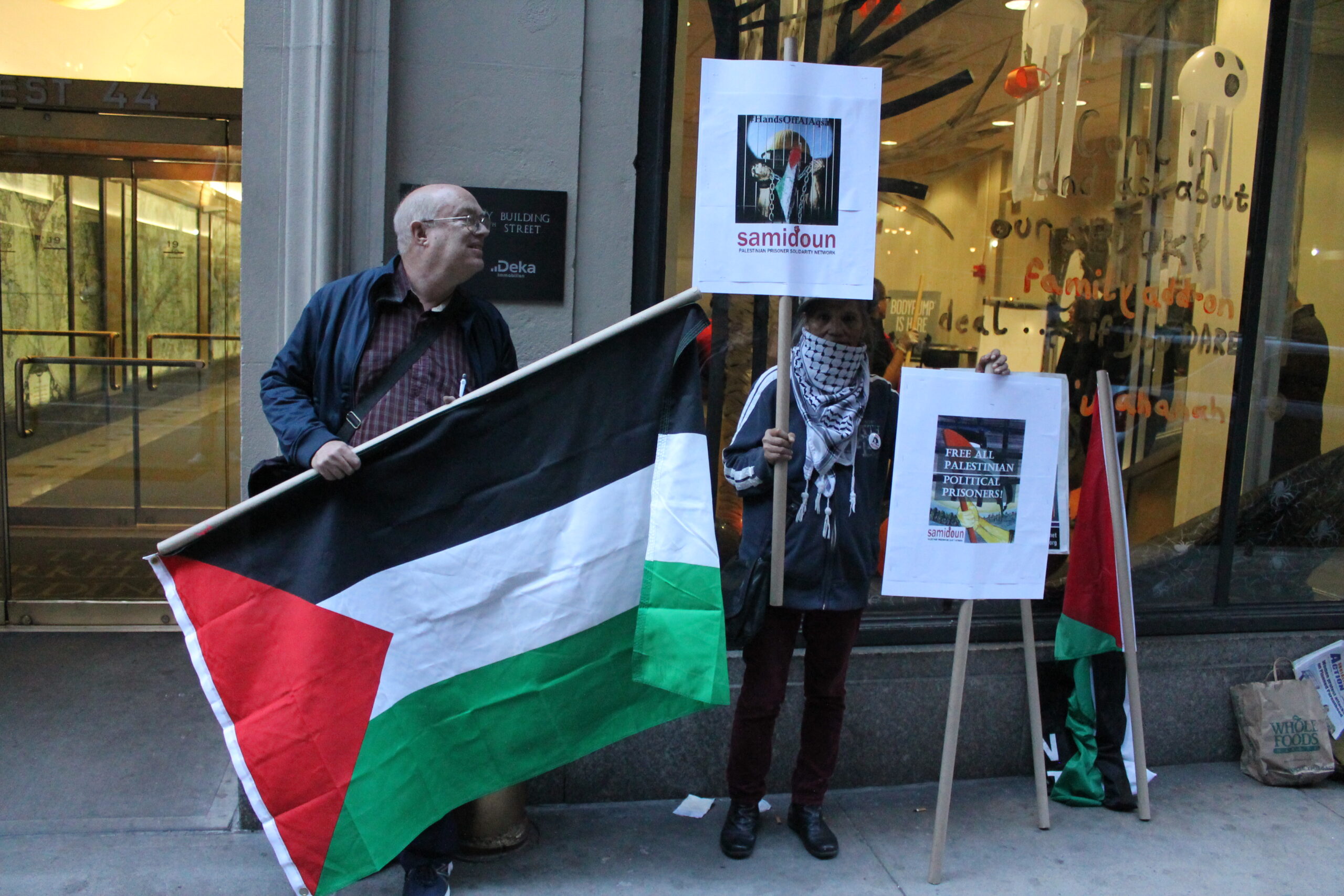 For the second week in a row, on 30 October, Samidoun Palestinian Prisoner Solidarity Network activists in New York City organized a protest in New York City outside the offices of G4S, the Danish/British security corporation that is directly involved in the Israeli imprisonment, repression and violation of the rights of Palestinian political prisoners in Israeli jails.