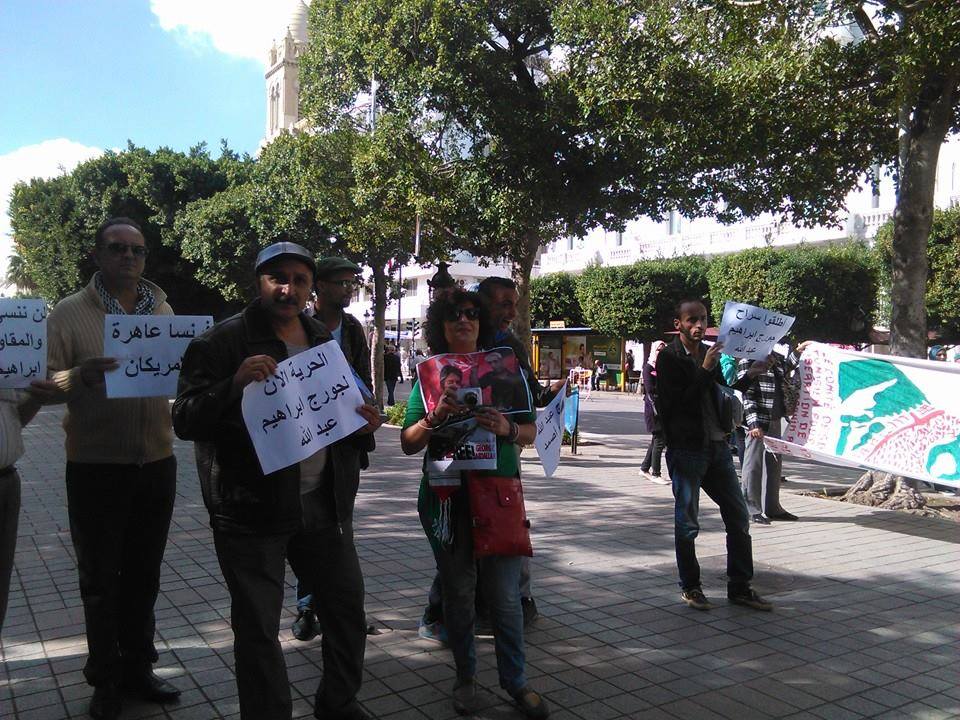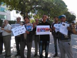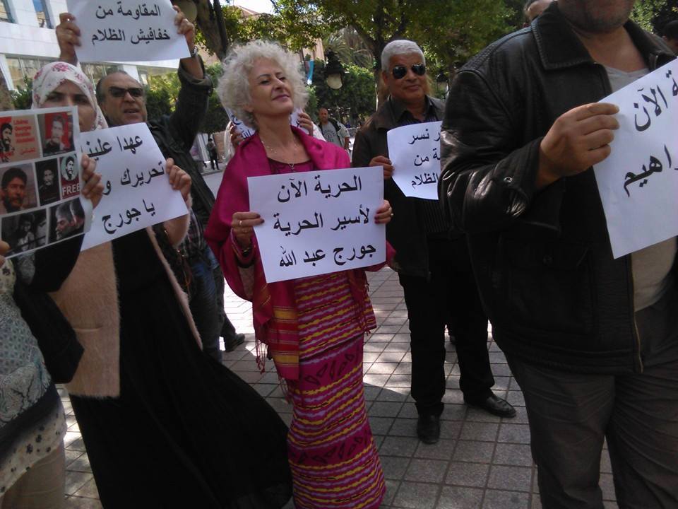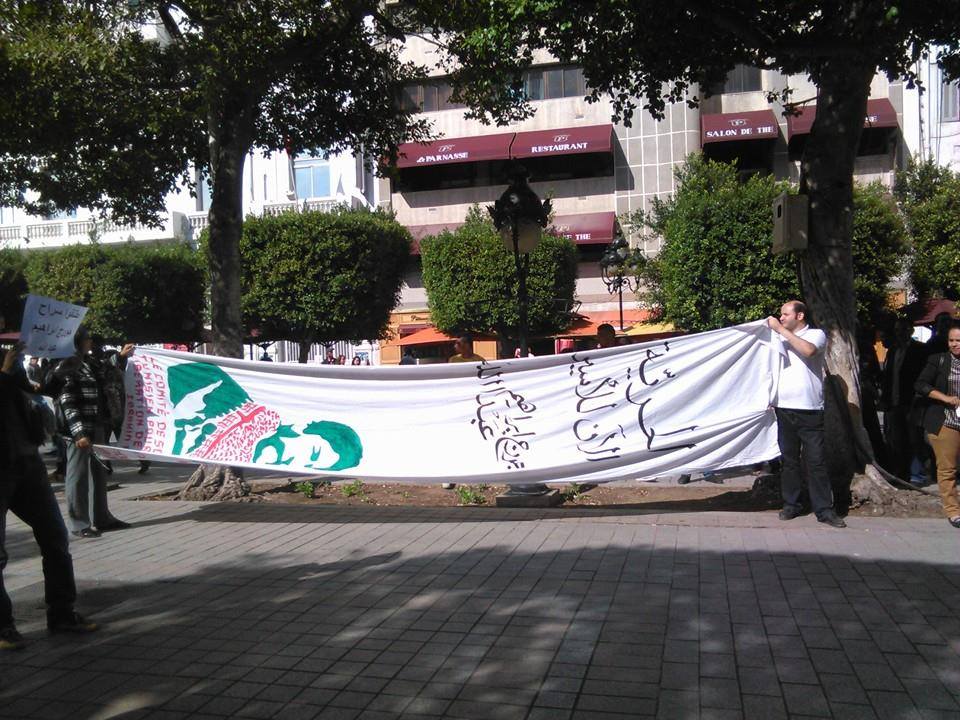 Tunis, Tunisia. The Tunisian Campaign to Free Georges Abdallah protested in Tunis at the French embassy for freedom for Georges Ibrahim Abdallah on 24 October 2015: