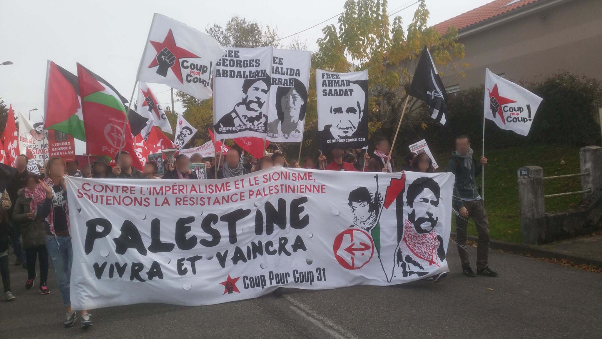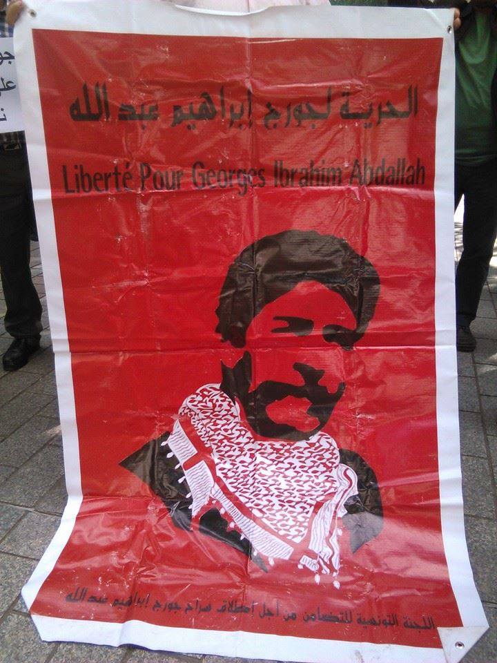 Events around the world demanded freedom for Ahmad Sa’adat, Georges Ibrahim Abdallah, and all Palestinian prisoners. 24 October 2015 marked the beginning of Abdallah’s 32nd year in French prison; it was also an international day of action for his freedom, with actions in Lannemezan, Lille, New York City, Brussels, Berlin, Milan, Tunis, Beirut, Algiers and Gaza City, as well as Bordeaux, Neuss, Rome, Naples, and Liege.