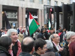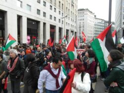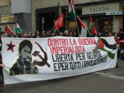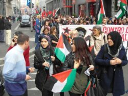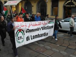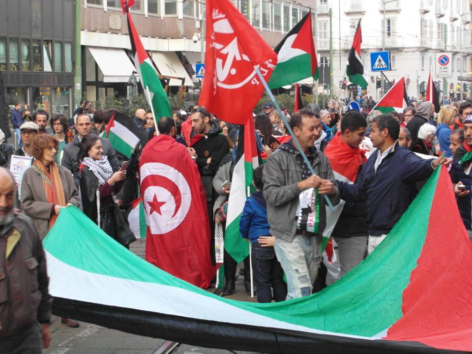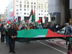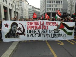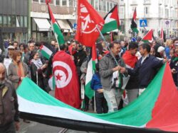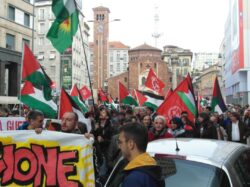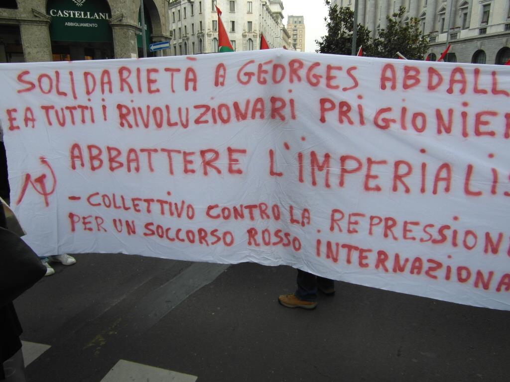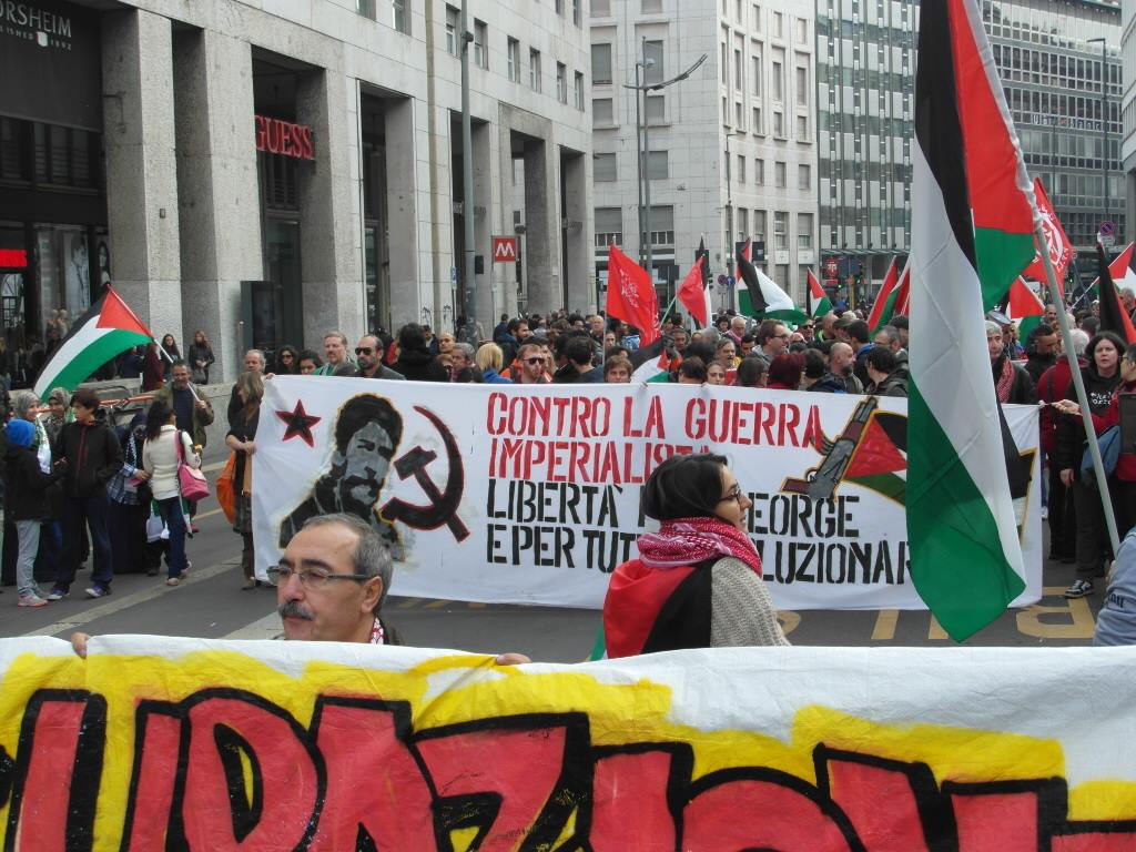 Milano, Italy. Activists protested for freedom for Georges Ibrahim Abdallah at the French consulate, then joining a large mass rally and march for Palestine and for Georges Abdallah’s freedom: