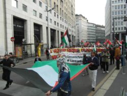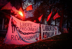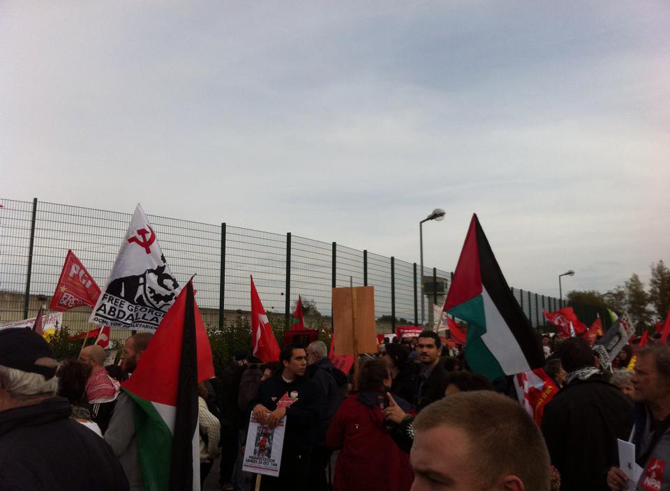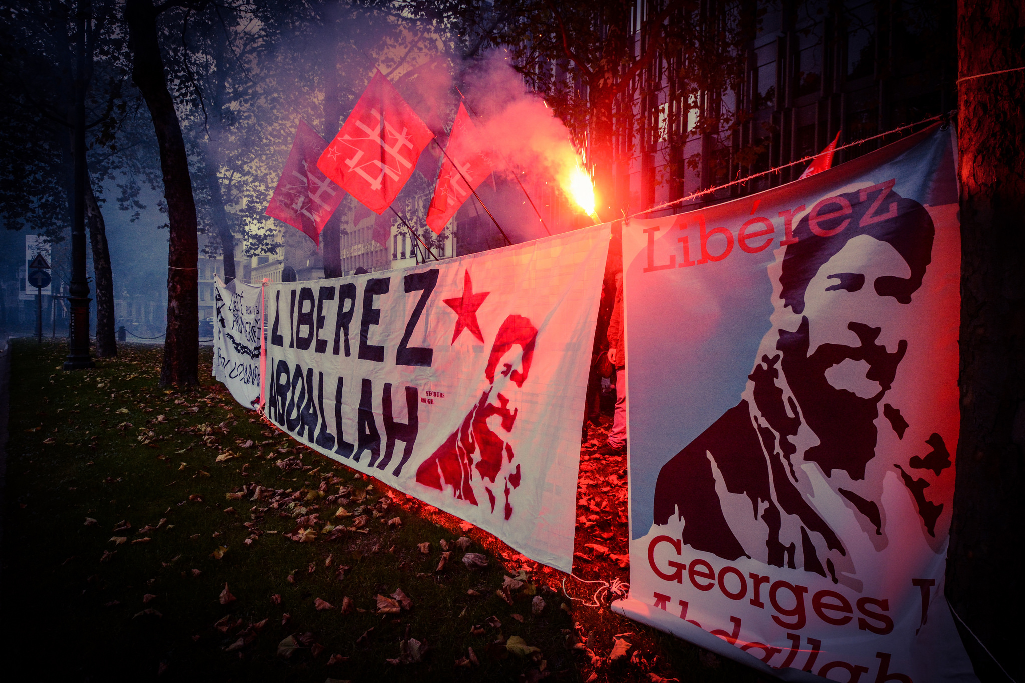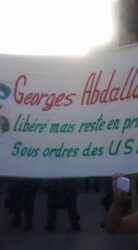 Lille, France: Hundreds marched in support of the Palestinian struggle, led by a giant banner demanding Abdallah’s immediate release: