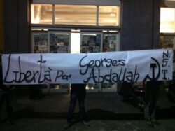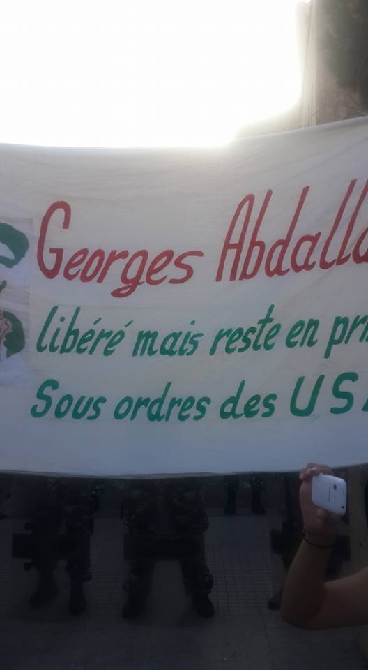 In Liege, Belgium, Secours Rouge reported that a banner was hung over the highway N671 demanding freedom for Abdallah: