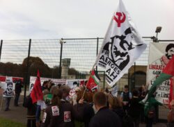 Brussels, Belgium: Secours Rouge organized a protest outside the French Consulate in Brussels, demanding freedom for Georges Abdallah: