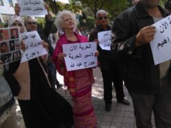 Beirut, Lebanon. From the home of Georges Ibrahim Abdallah, protest at the French embassy demanding his freedom and his release to Lebanon.
