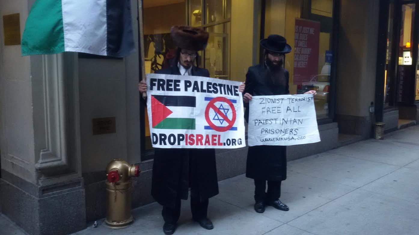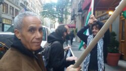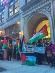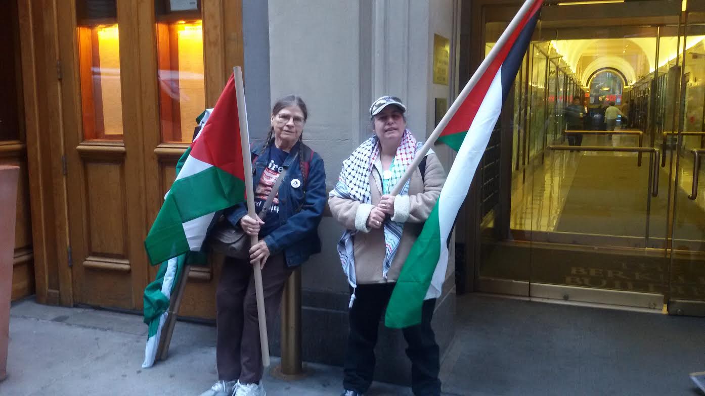 New York City: Part of the Week of Action to Free Ahmad Sa’adat, Georges Ibrahim Abdallah and all Palestinian prisoners, activists protested outside the offices of G4S, the British/Danish security profiteer which profits from the imprisonment of Palestinian prisoners.