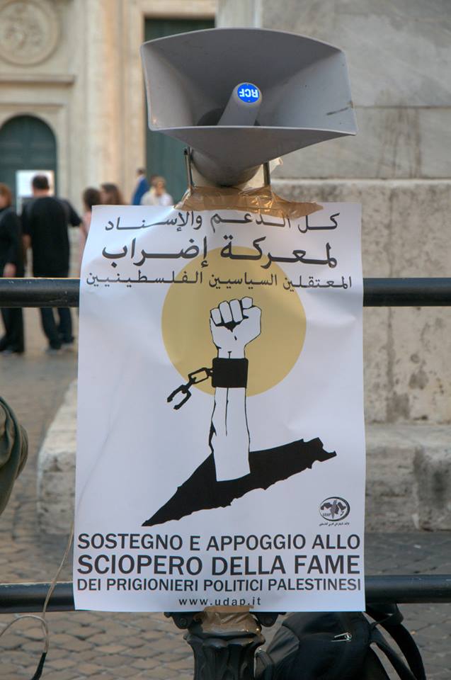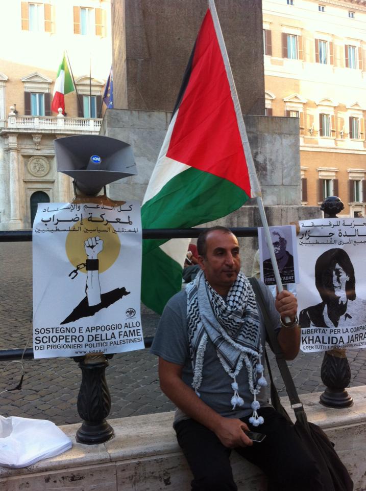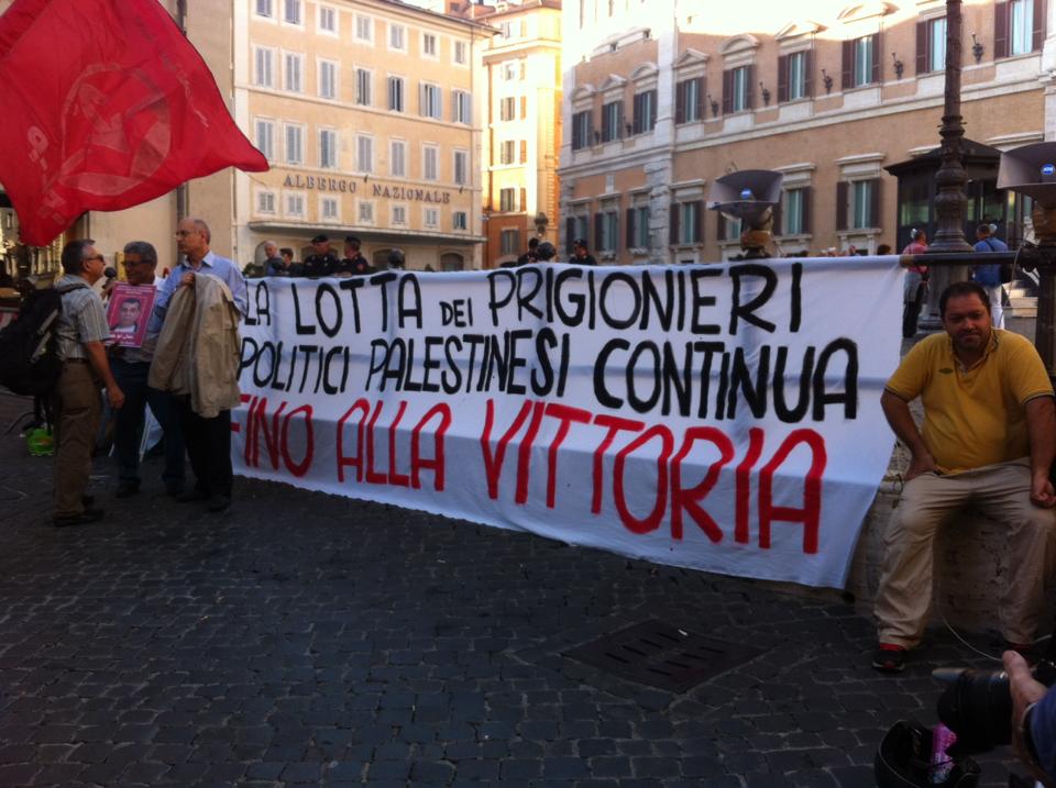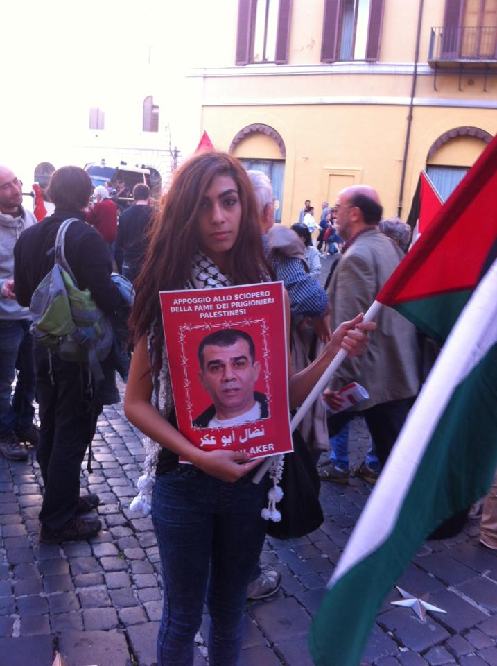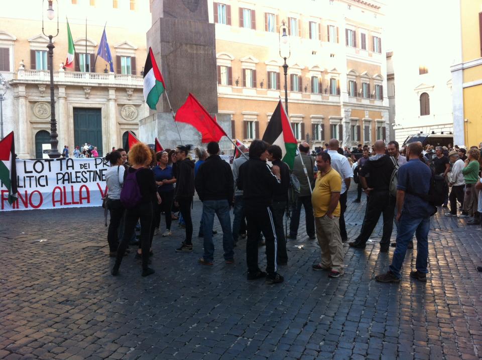 Dozens of activists and supporters of Palestine demonstrated at the Piazza di Montecitorio in Rome, Italy on 3 October in solidarity with Palestinian political prisoners, demanding their freedom. Organized by the Arab Palestinian Democratic Union (UDAP), the protest was addressed by Dalya Abu Aker, activist and the daughter of Nidal Abu Aker, imprisoned Palestinian jouranlist held without charge or trial, who recently ended a 40-day hunger strike against administrative detention.