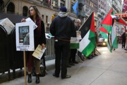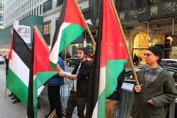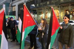 On Friday, 20 November, New Yorkers gathered outside the offices of G4S, the British/Danish security conglomerate subject to a global boycott call for its occupation and apartheid profiteering, including providing security systems and control rooms for Israeli prisons which hold Palestinian political prisoners, and equipping the Israeli police training center that trains the police attacking Palestinians in Jerusalem and at Al-Aqsa mosque. Samidoun NY has been holding weekly protests outside the New York G4S office, demanding a boycott and distributing leaflets with information on G4S’ activities.