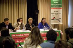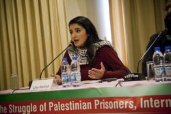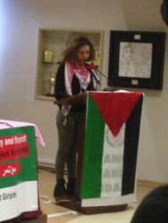 Lina Khattab, a student at Birzeit University and important figure of the imprisoned Palestinian students, provided the second speech of the session. During a PFLP rally for solidarity with prisoners on 13 December 2014, Khattab was taken captive and held by an Israeli military court for six months on charges of “throwing stones” and “participating in an illegal demonstration”. Student movements are an element of the Palestinian struggle, Khattab said, adding that Palestinian youths were engaging in a struggle to protect their rights at university.