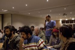 Taking the floor in the wake of Sezer, Zeina Hamad, a member of the Palestinian diaspora, highlighted popular freedom struggles, noting that “as people who are resisting in Turkey and Palestine, we find our path in the poems of Nazım Hikmet and Mahmoud Darwish.”