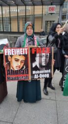Organized by the Palästinensicher Frauenverband in Deutschland (Palestinian Women’s Association in Germany), the protesters called for freedom for all Palestinian prisoners, denouncing the Israeli occupation and its system of administrative detention, military courts and mass political imprisonment over the Palestinian people.
