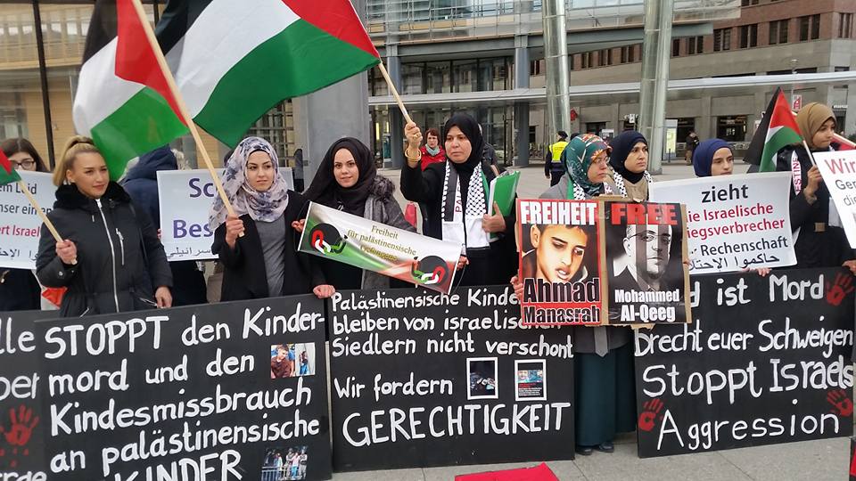 Organized by the Palästinensicher Frauenverband in Deutschland (Palestinian Women’s Association in Germany), the protesters called for freedom for all Palestinian prisoners, denouncing the Israeli occupation and its system of administrative detention, military courts and mass political imprisonment over the Palestinian people.