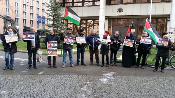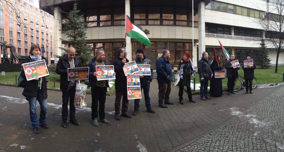 The Democratic Palestine Committees in Berlin organized a protest on 11 January in front of the Bulgarian embassy to Germany in solidarity with Omar Nayef Zayed, former Palestinian political prisoner threatened with extradition from Bulgaria to Israel. They delivered a letter to the Bulgarian embassy calling on the Bulgarian government to reject the Israeli extradition request and defend Zayed’s rights.