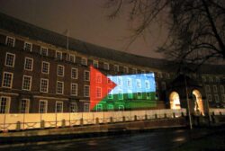 A group of activists in Bristol, UK joined the international campaign to Free Ahmad Manasrah, projecting a video about the 13-year-old Palestinian boy’s severe injury, abusive interrogation, imprisonment and separation from his family at the hands of Israeli occupation forces on the city council building on Sunday, 17 January.