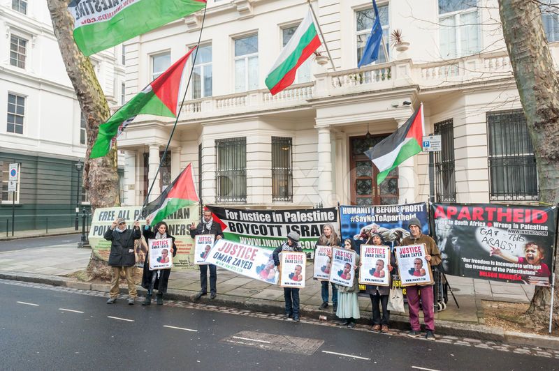 The London protest kicked off a week of action for Zayed, including events in New York City, Berlin, Brussels, Ramallah, Gaza and elsewhere calling for the Bulgarian government to reject the extradition request against Zayed, who has lived in Bulgaria for 22 years. His wife and children are Bulgarian citizens and he is a well-known member of the Palestinian community in Sofia.