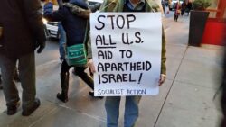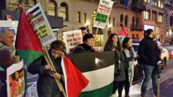 Samidoun Palestinian Prisoner Solidarity Network organized a protest on 8 January in New York City outside the offices of British-Danish security corporation G4S, which provides control rooms and security equipment to Israeli prisons, checkpoints and police training centers. Samidoun is part of an international movement demanding that G4S end its complicity in the torture and occupation of Palestinians and that the United Nations and other institutions stop doing business with this human rights abusing corporation.