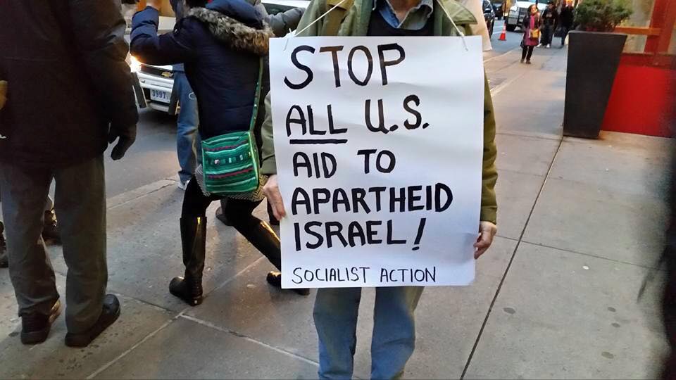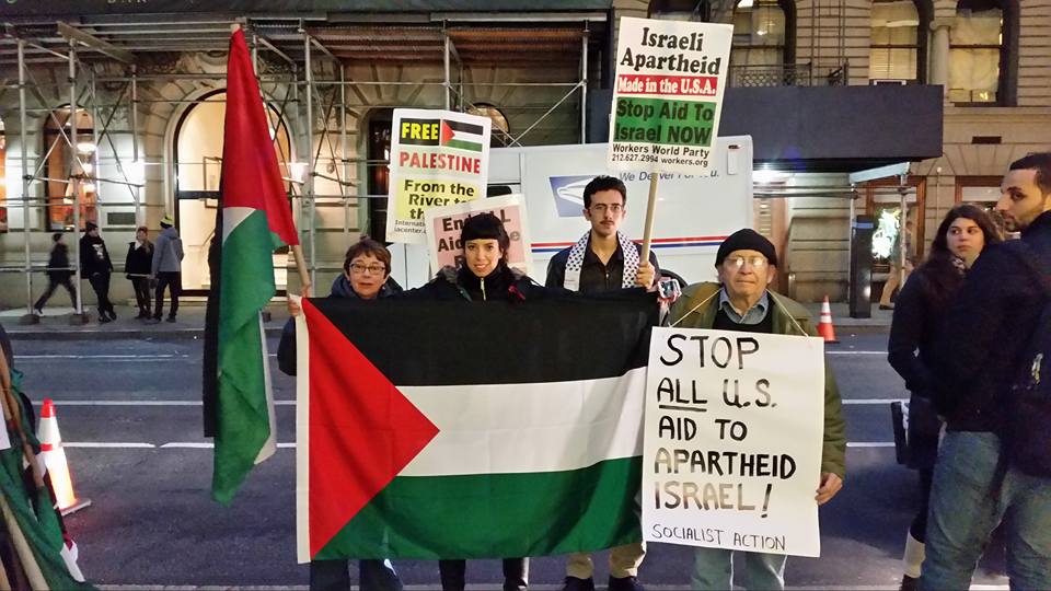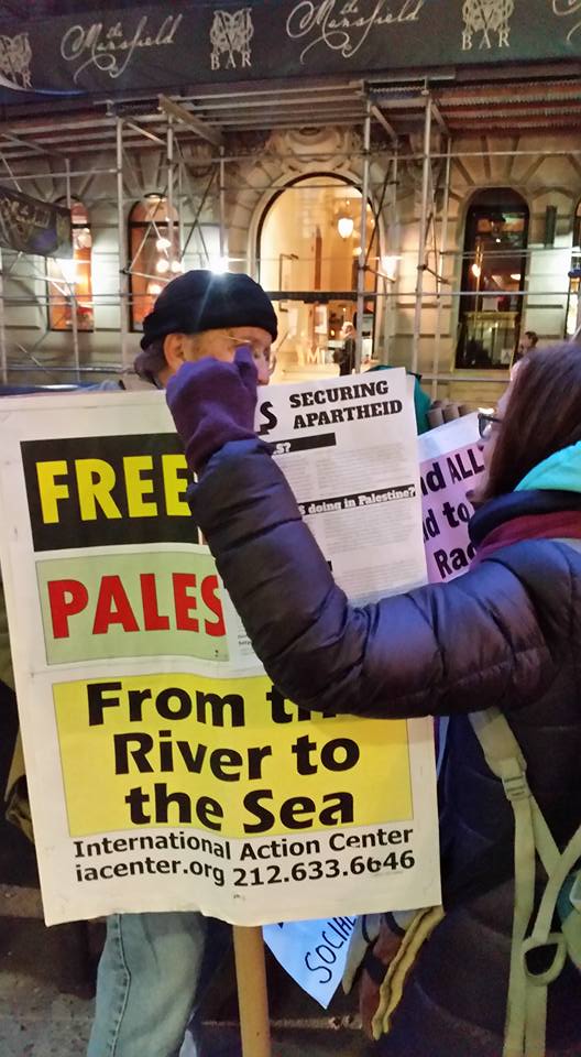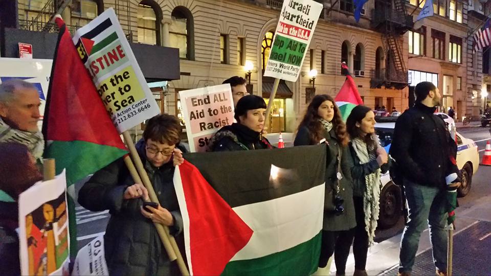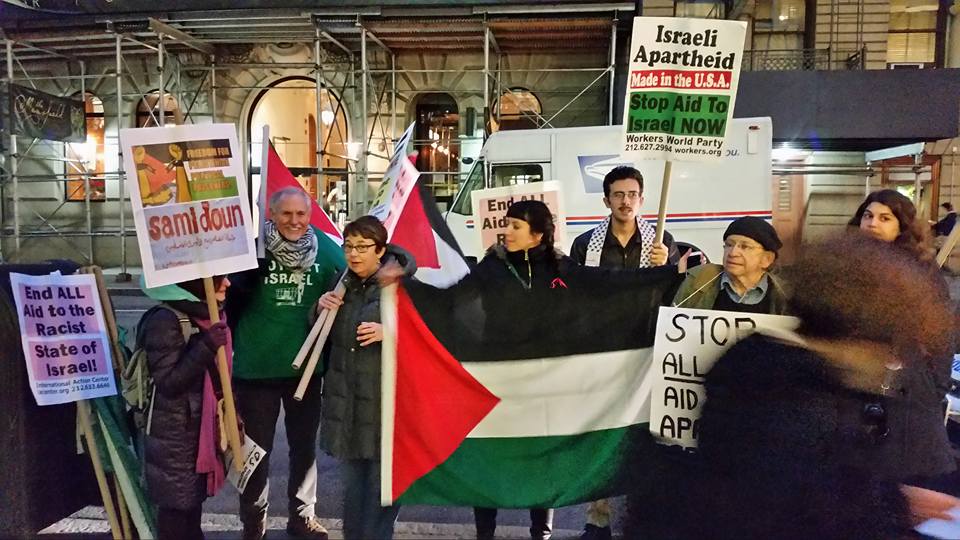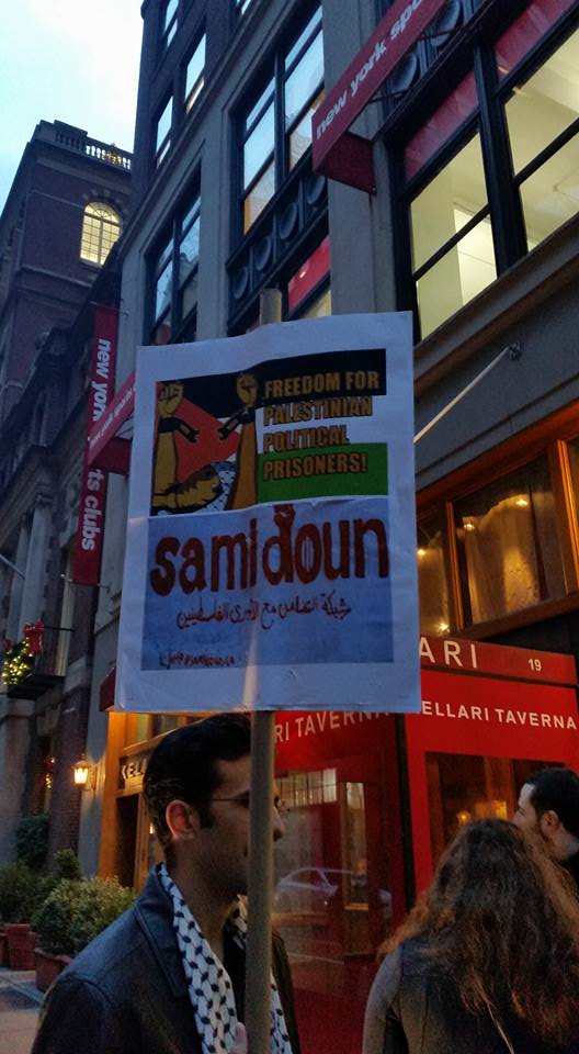 Samidoun Palestinian Prisoner Solidarity Network organized a protest on 8 January in New York City outside the offices of British-Danish security corporation G4S, which provides control rooms and security equipment to Israeli prisons, checkpoints and police training centers. Samidoun is part of an international movement demanding that G4S end its complicity in the torture and occupation of Palestinians and that the United Nations and other institutions stop doing business with this human rights abusing corporation.