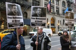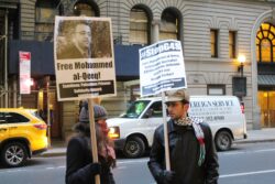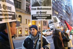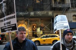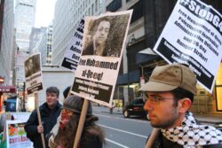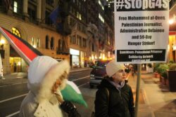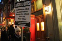 New Yorkers came out on Friday, 22 January – despite low temperatures and a threatened heavy snowstorm – to protest G4S‘s complicity in Israeli imprisonment, torture and oppression of Palestinians, and to call for freedom for imprisoned Palestinian journalist Mohammed al-Qeeq, on his 59th day of hunger strike against his detention without charge or trial.