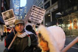 Samidoun Palestinian Prisoner Solidarity Network – NY protests weekly outside the New York headquarters of G4S, the British-Danish security multinational that provides security systems and control rooms to Israeli prisons, checkpoints and police training centers, placing G4S and its equipment at the heart of the “matrix of control” that governs Palestinian lives under occupation and apartheid. Hundreds of organizations around the world, following calls from Palestinian prisoners and Palestinian organizations, have urged a boycott of G4S, and especially urged the United Nations to stop doing business with the corporation.