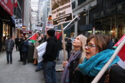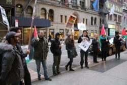 Organized by Samidoun Palestinian Prisoner Solidarity Network, the protest outside the New York City offices of G4S demanded al-Qeeq’s immediate release as well as an end to G4S’ contracts to provide security systems to Israeli prisons and checkpoints. Today’s New York City protest for Al-Qeeq joined events in London, Berlin, and in various towns and cities in Palestine.
