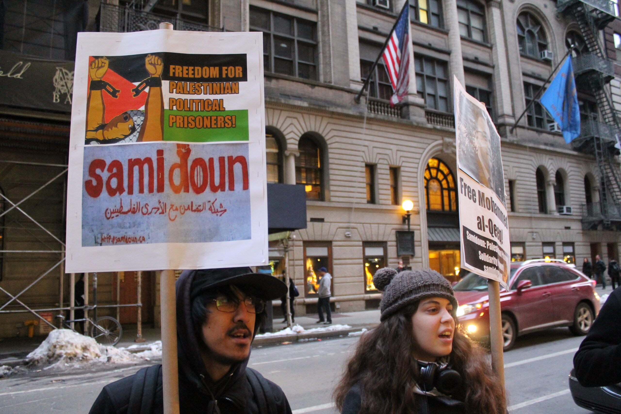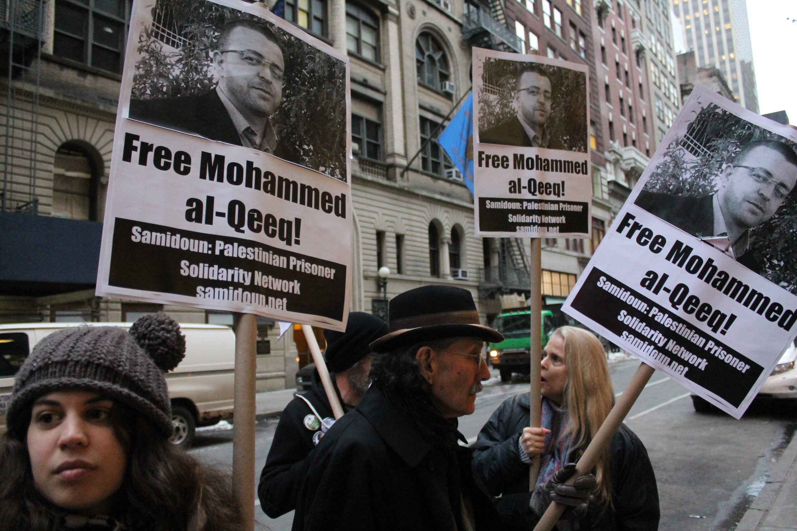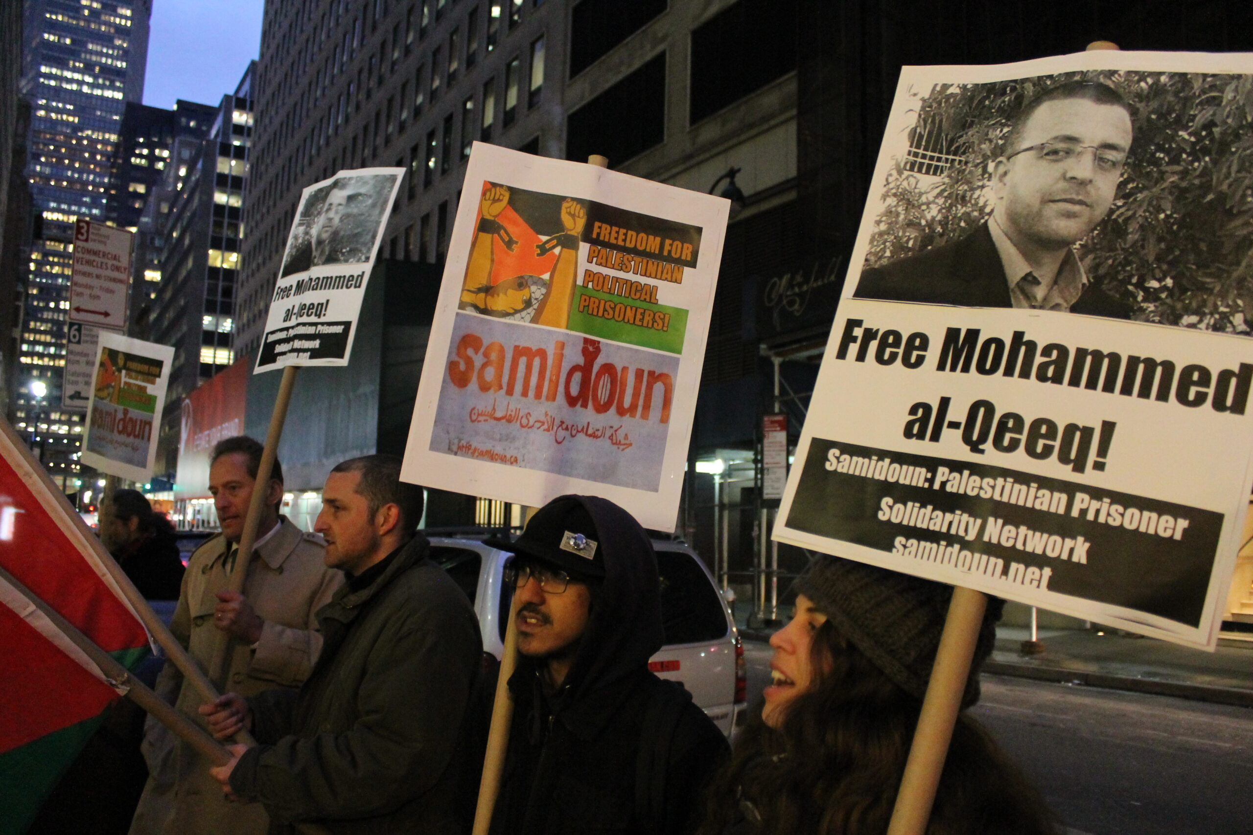 New Yorkers took to the streets on Friday, 29 January to demand the immediate release of imprisoned Palestinian journalist Mohammed al-Qeeq, on his 66th day of hunger strike and shackled to his hospital bed in critical condition.
