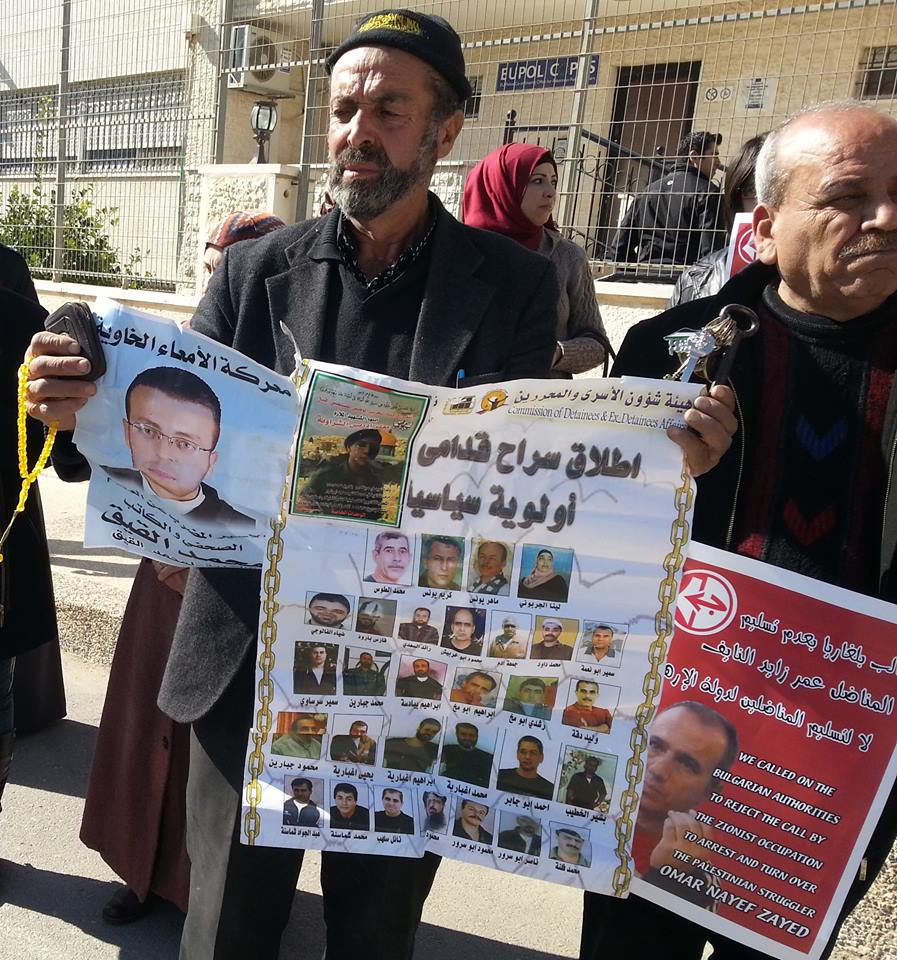 Palestinians in Ramallah gathered for a sit-in outside the headquarters of the European Union on 11 January, in solidarity with former political prisoner Omar Nayef Zayed, now being pursued for extradition from Bulgaria by the Israeli state.