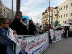Speakers at the protest included former hunger striker and freed prisoner Muhammad Allan. Al-Qeeq’s wife spoke at the event, saying that interrogation they asked him constantly about his journalistic activities and reporting. Participants criticized Palestinian official institutions and the Journalists’ Syndicate for their lack of public involvement and advocacy to free imprisoned journalists, especially Al-Qeeq, whose hunger strike in protest of his detention has lasted for over a month.