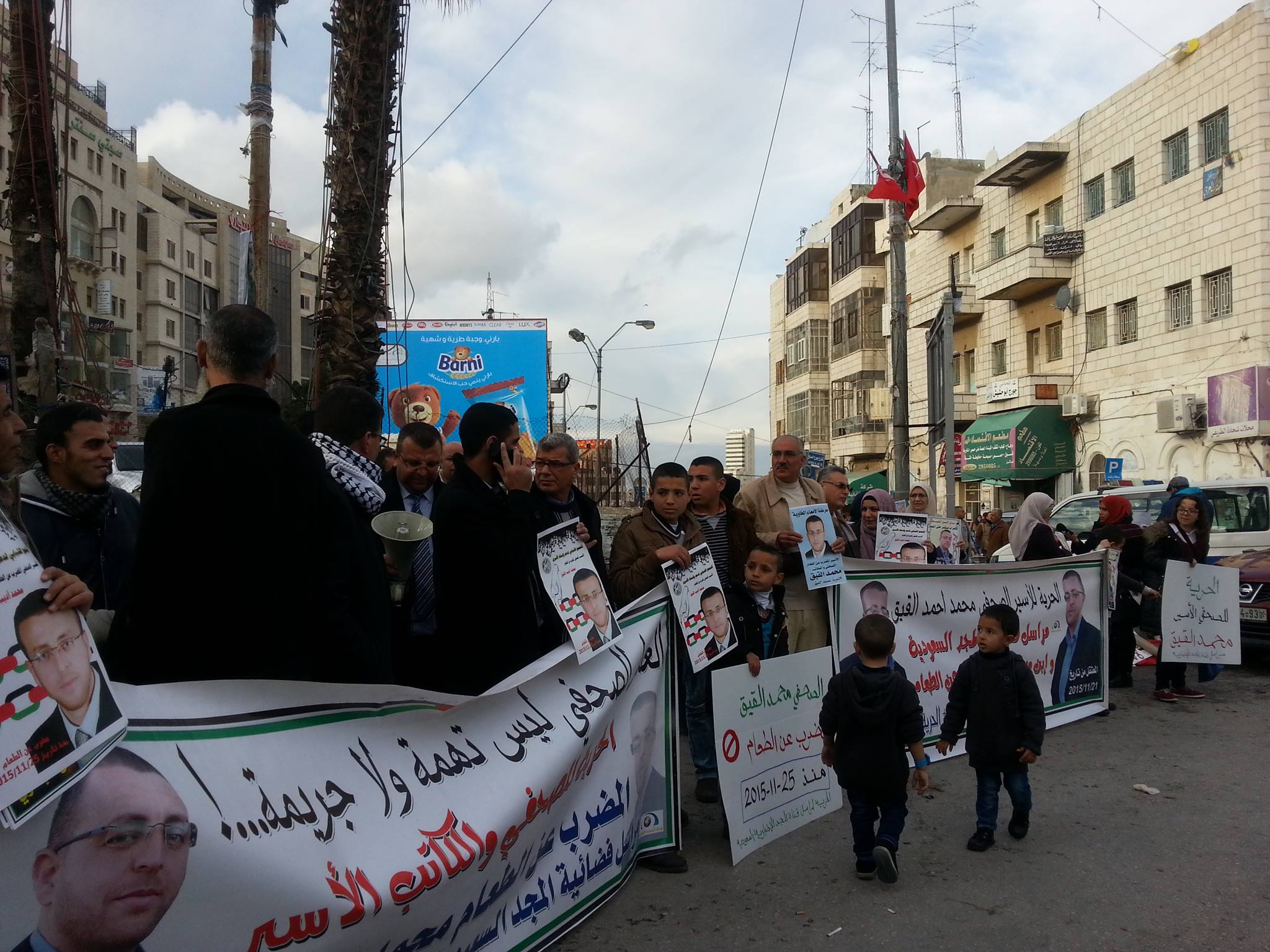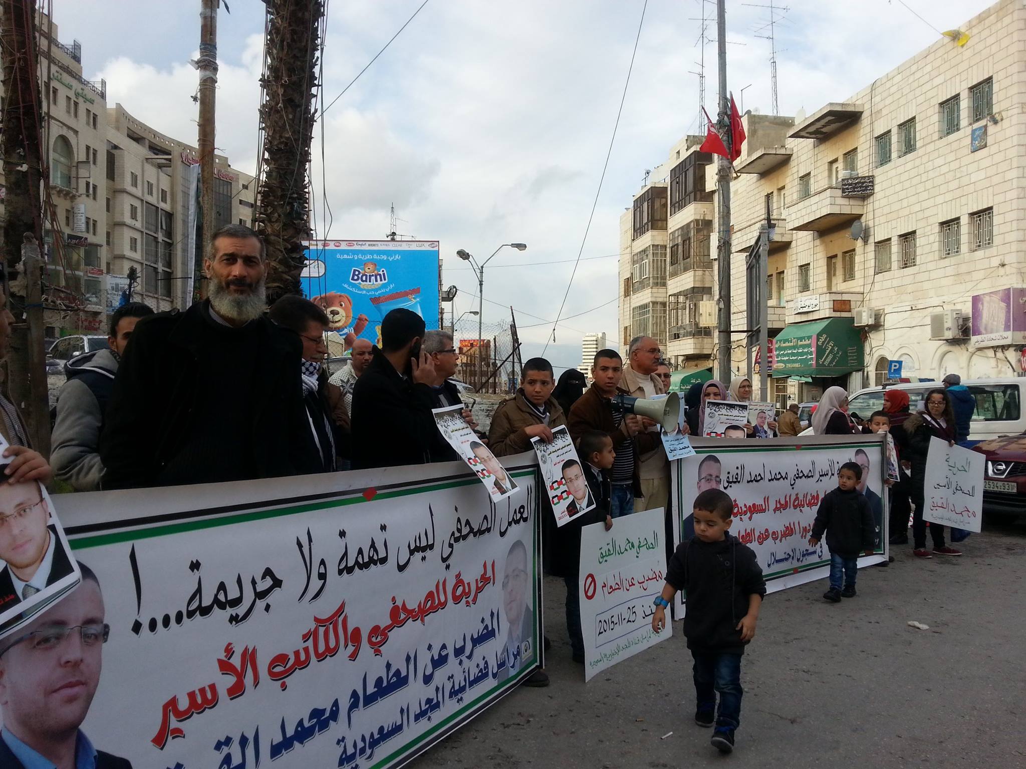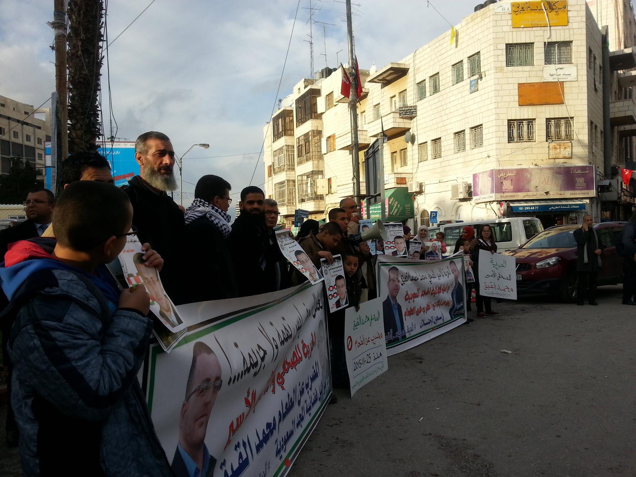 Speakers at the protest included former hunger striker and freed prisoner Muhammad Allan. Al-Qeeq’s wife spoke at the event, saying that interrogation they asked him constantly about his journalistic activities and reporting. Participants criticized Palestinian official institutions and the Journalists’ Syndicate for their lack of public involvement and advocacy to free imprisoned journalists, especially Al-Qeeq, whose hunger strike in protest of his detention has lasted for over a month.