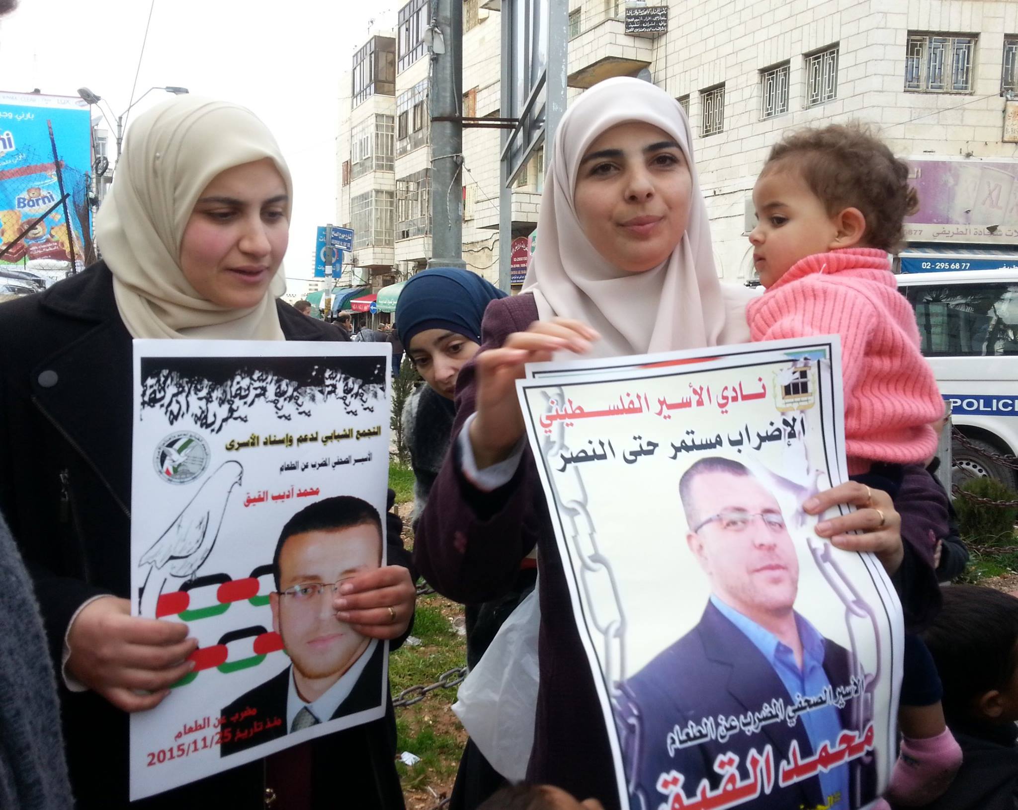 Palestinians in Ramallah gathered today, 4 January, in solidarity with hunger-striking imprisoned journalist Mohammed Al-Qeeq. Al-Qeeq, who has been on hunger strike since 25 November. A reporter for Al-Majd news channel, Al-Qeeq has been detained since 21 November by Israeli occupation forces.