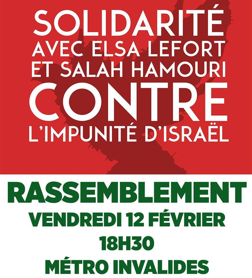 Protest on Friday, 12 February in Paris in solidarity with Elsa Lefort and Salah Hamouri, kept apart by Israeli apartheid and impunity!