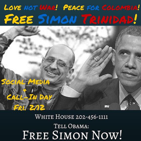 Say: “I want Peace for Colombia and to ask President Obama to free Simon Trinidad for Valentine’s Day! Trinidad belongs at the peace talks, not in solitary confinement at the Florence Colorado Supermax prison. Peace and love for all progressive people in Colombia!”
